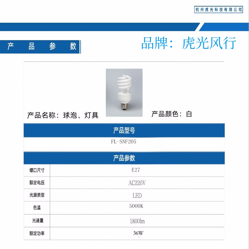 虎光风行 FL-SNF205 36W球泡 50个 灯具 50.00 个/箱 (计价单位:箱) 白