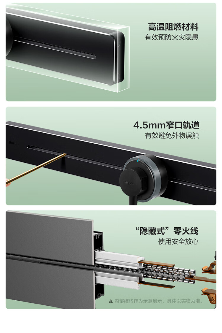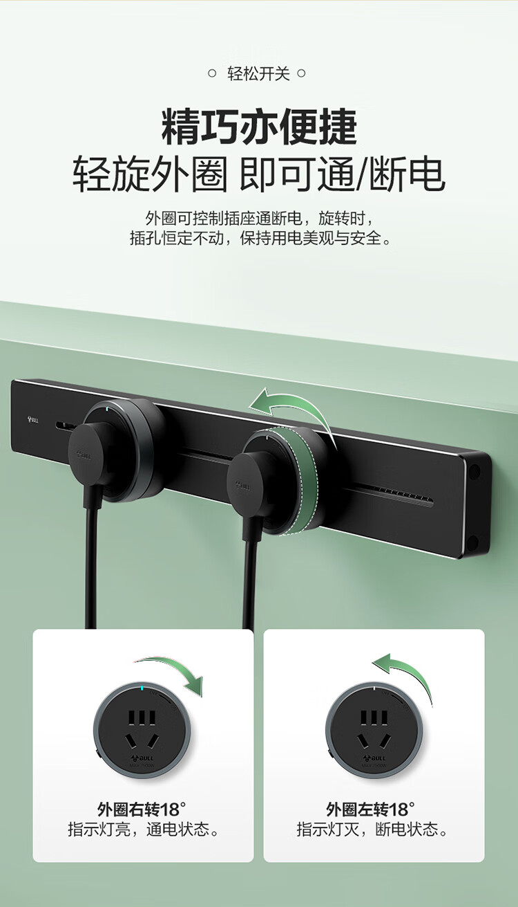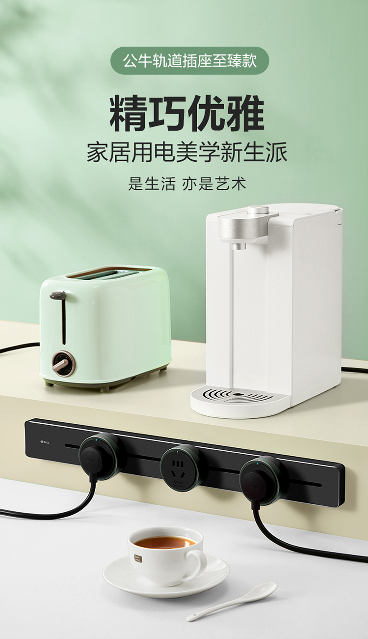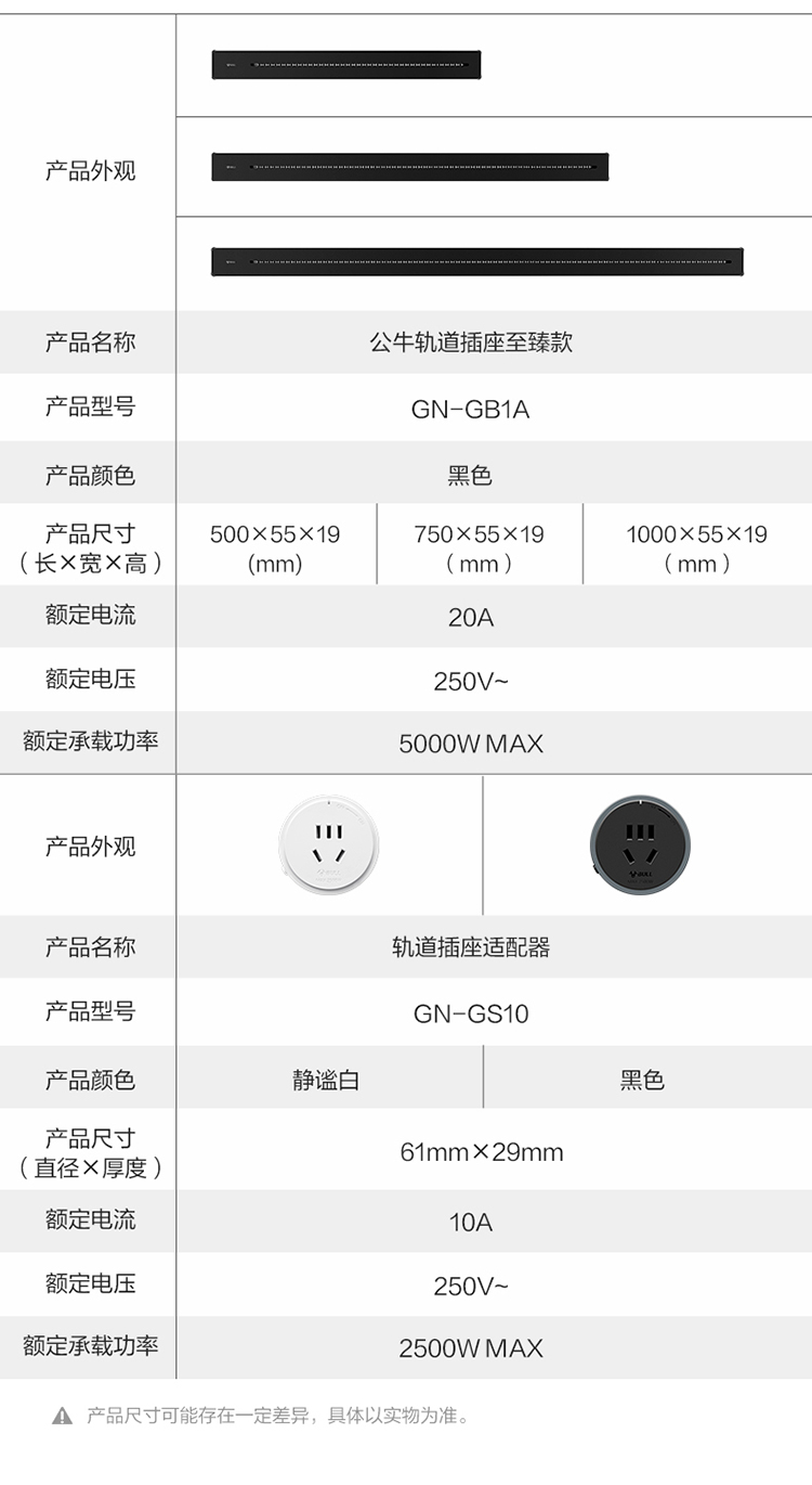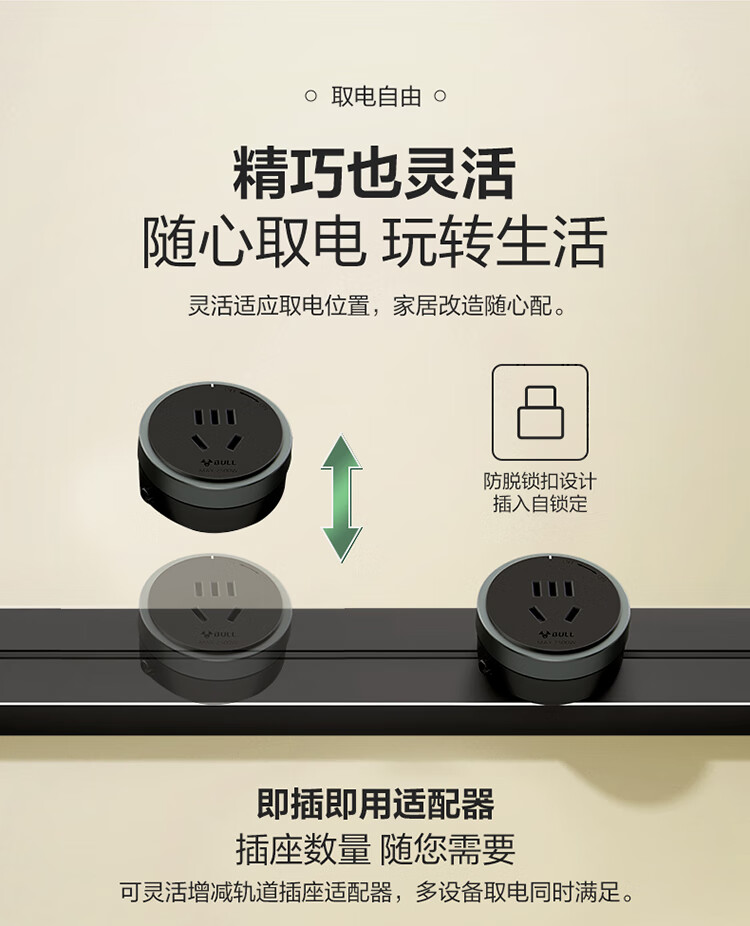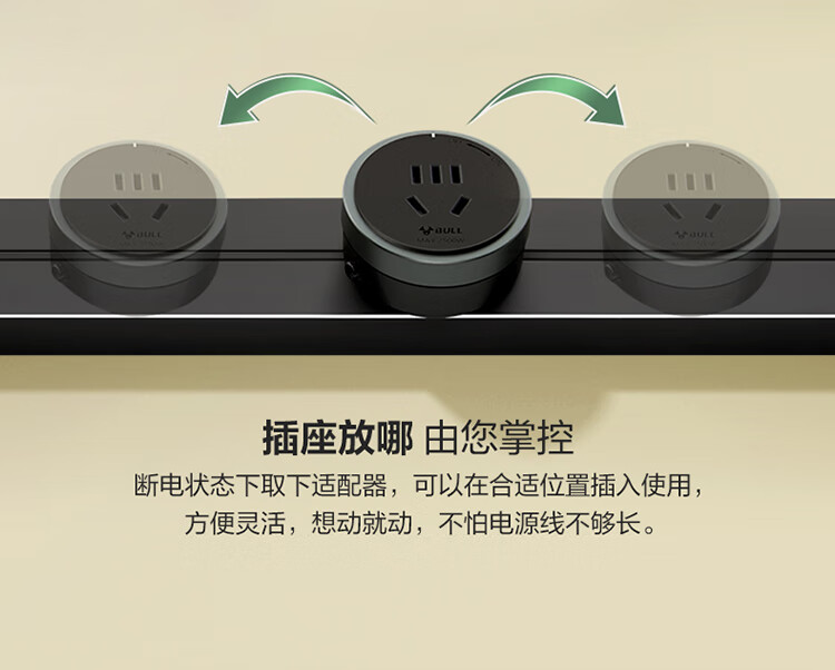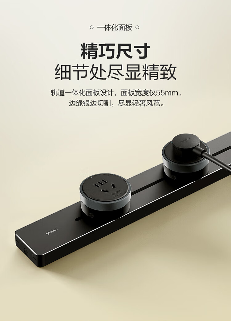 公牛(BULL)明装 轨道插座 mini可移动墙壁插座壁挂式/插线板/接线板 多功能免打孔 75厘米+4个五孔 黑色 单位:个