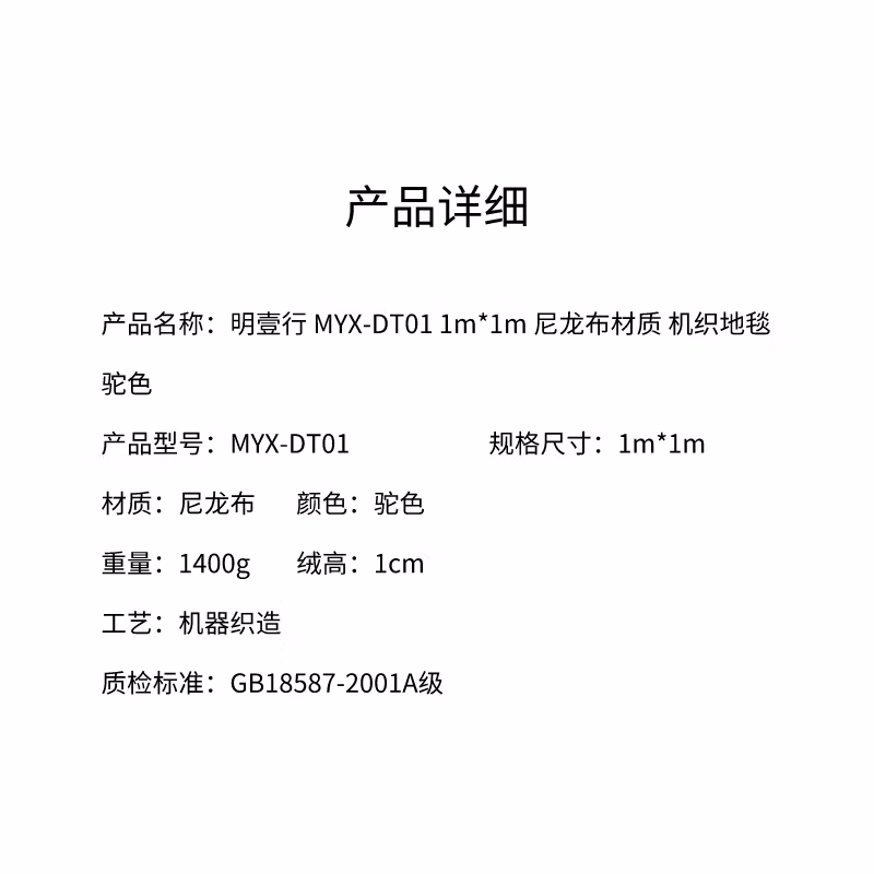 明壹行 MYX-DT01 尼龙布 1m*1m 地毯 (计价单位:块) 驼色