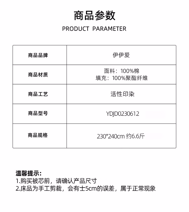 伊伊爱 YDJD0230612/230*240cm(约6.6斤) 全棉防羽布纯白春秋被芯 (计价单位:件) 白色