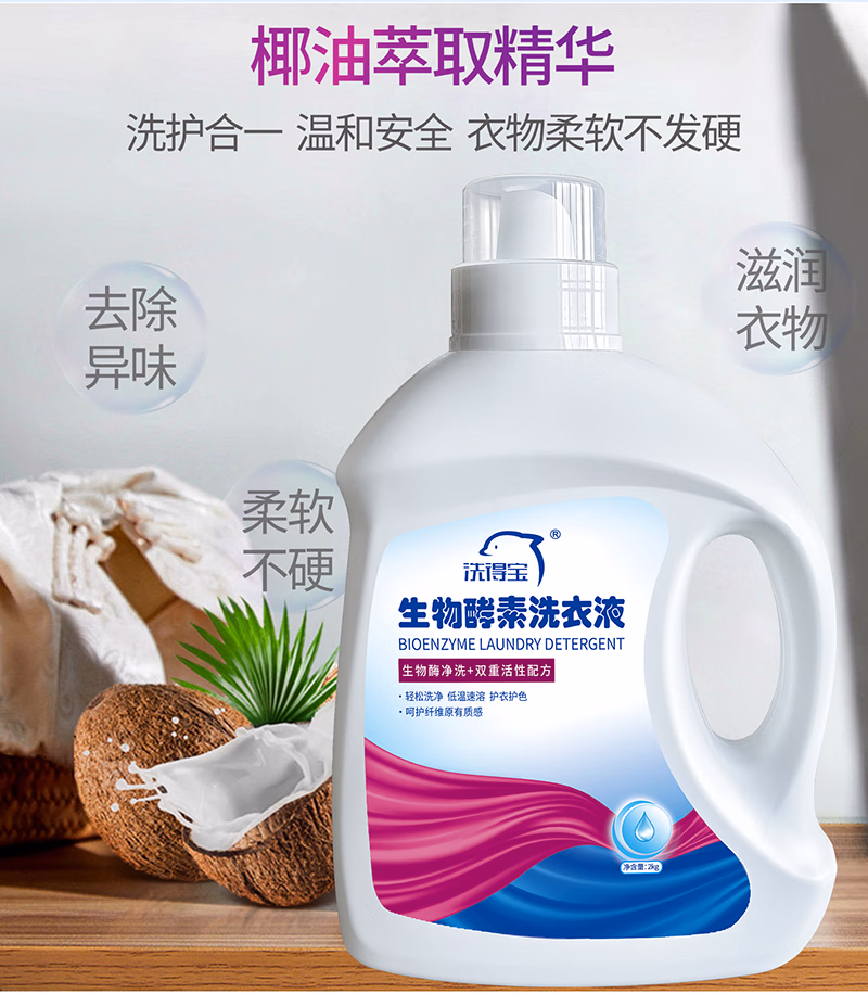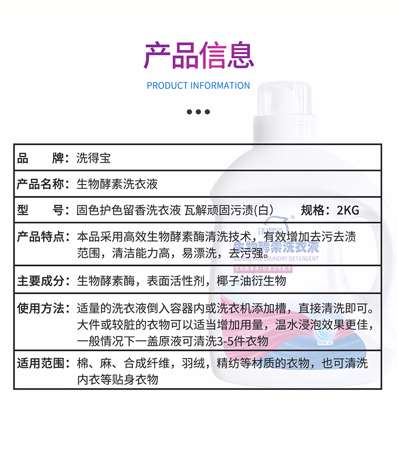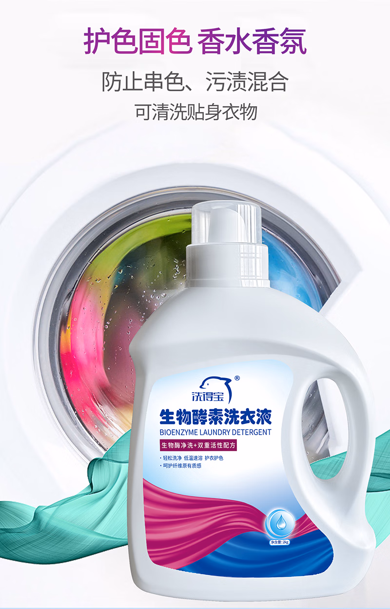 洗得宝 2kg 固色护色留香洗衣液 瓦解顽固污渍 生物酵素洗衣液 (计价单位:瓶) 白