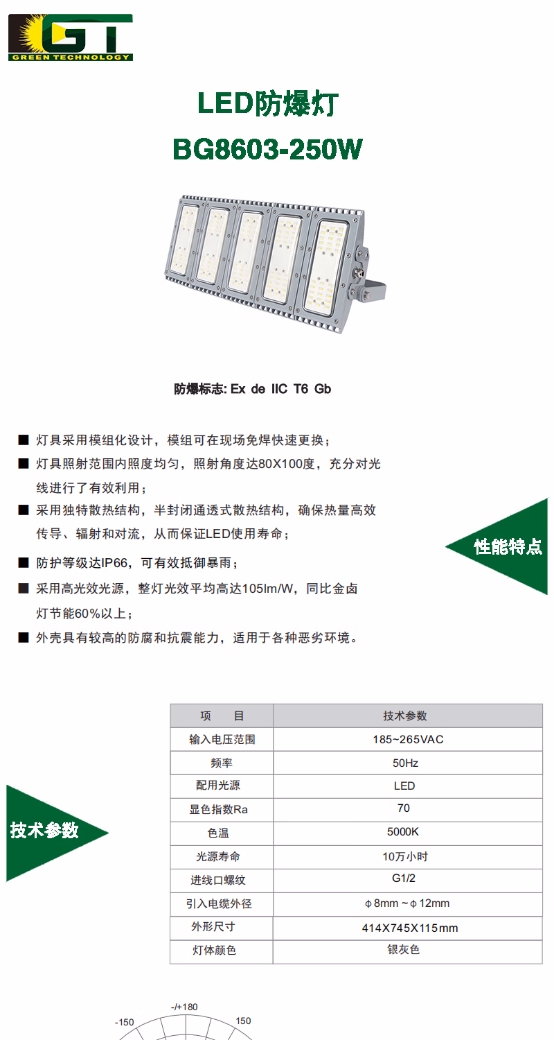 吉特(GT) BG8603-250W 250W IP66 Ex de IIC T6 Gb AC185~265V 色温5000K LED防爆灯 (计价单位:盏) 银灰色