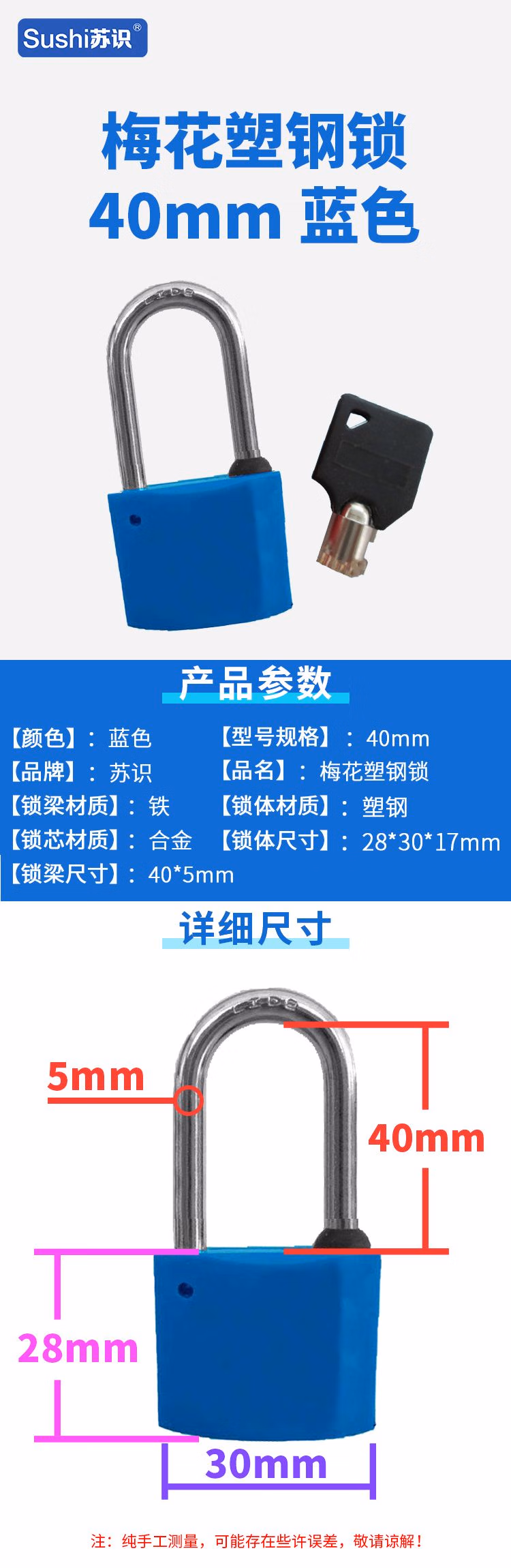 苏识 40mm 蓝色 梅花塑钢锁 1.00 个/把 (计价单位:把) 蓝色
