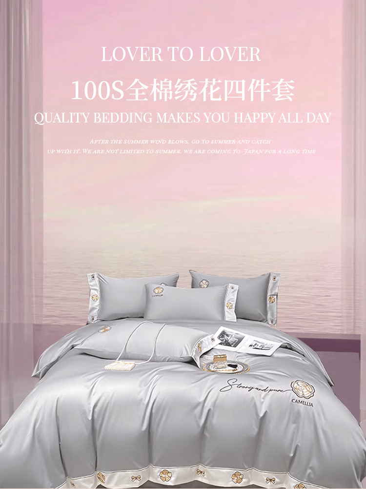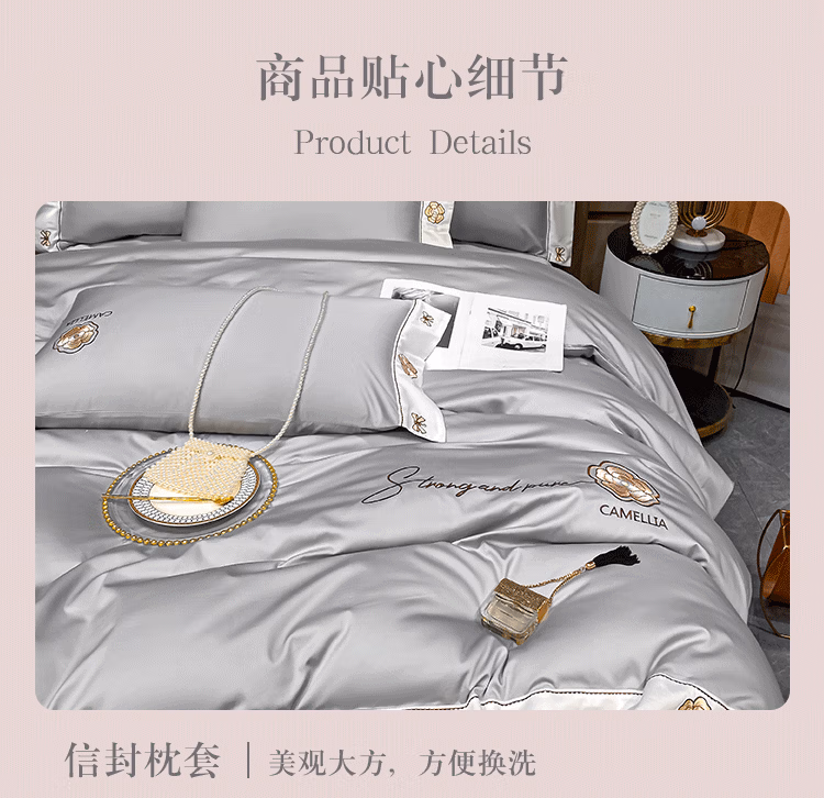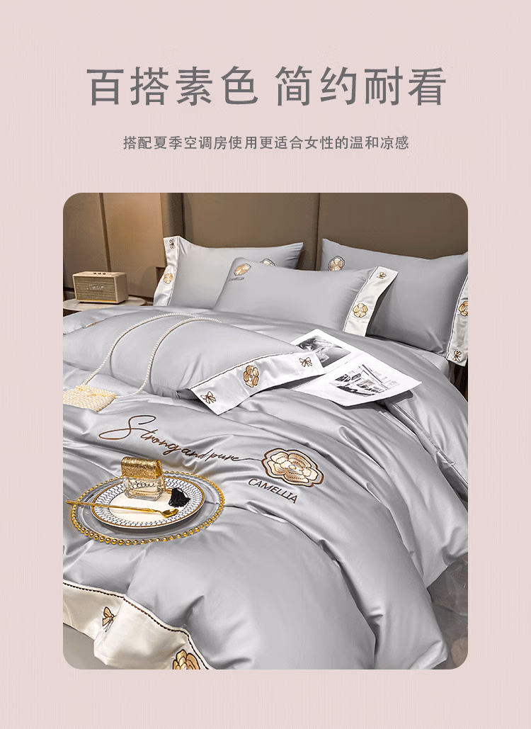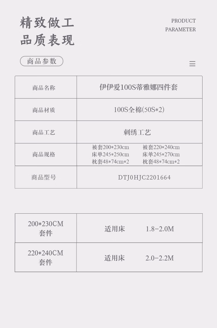伊伊爱 DTJ0HJC2201664 /200*230cm 蒂雅娜绣花纯棉四件套 (计价单位:套) 深岩灰