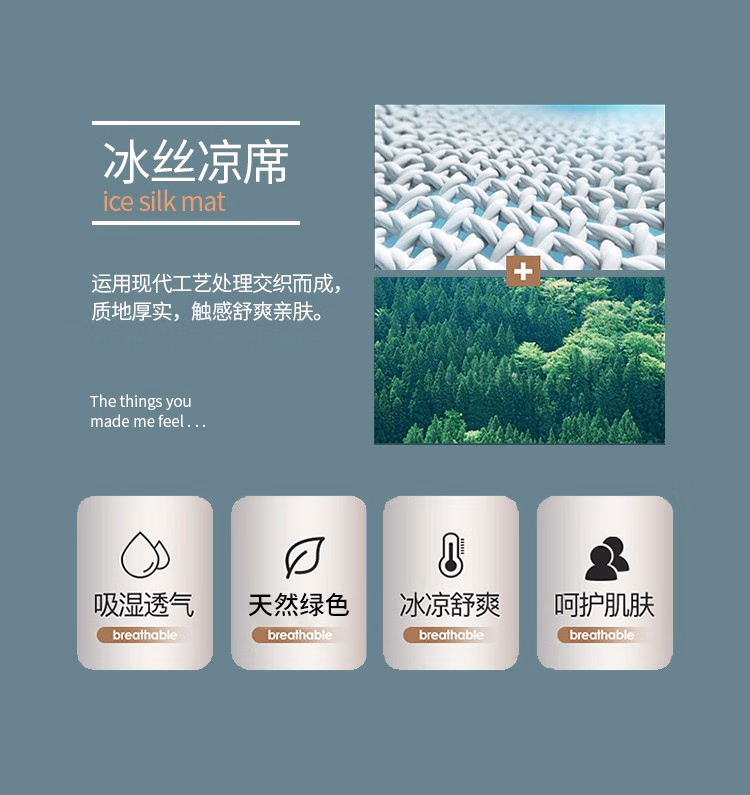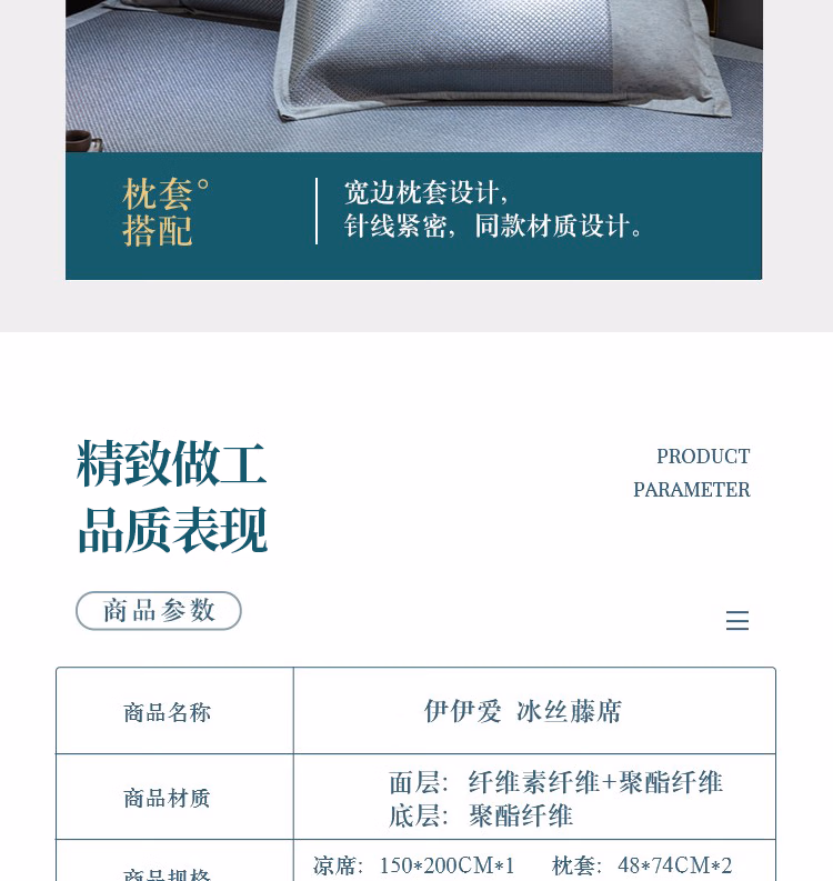 伊伊爱 XZ0AN02200014 /180*200cm纯色冰藤凉席三件套 凉席 (计价单位:件) 灰色