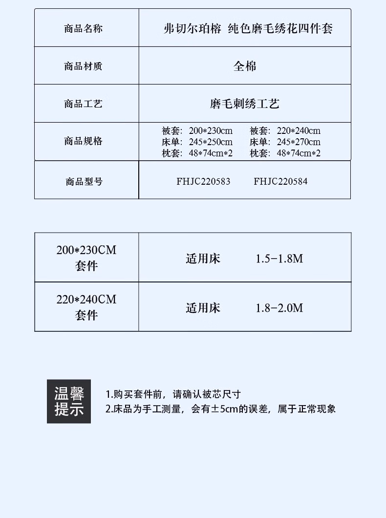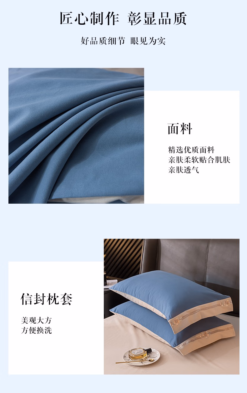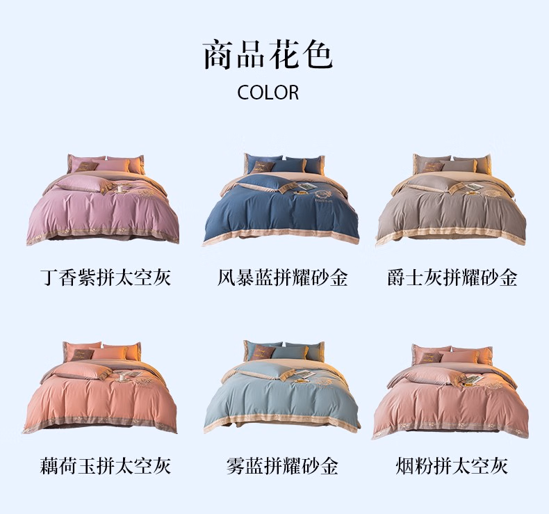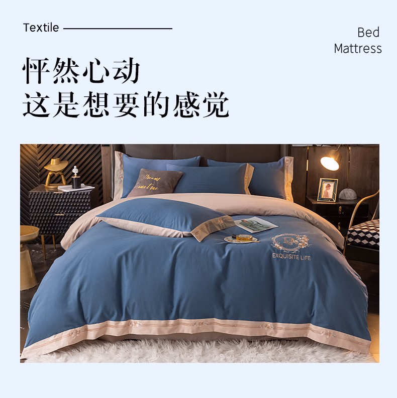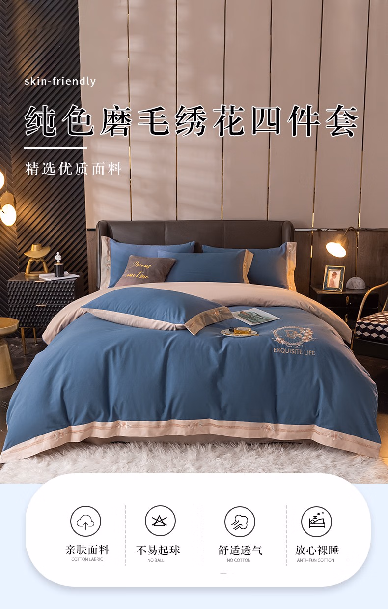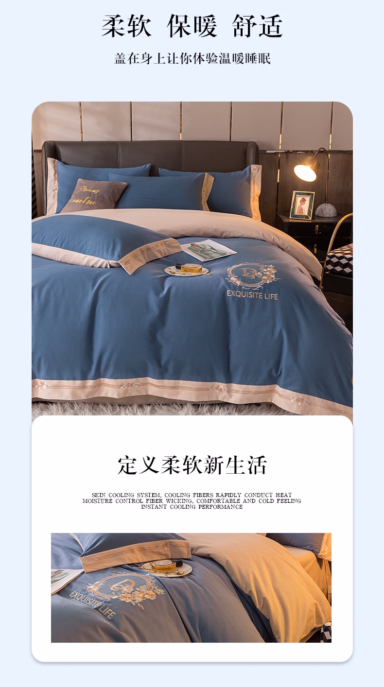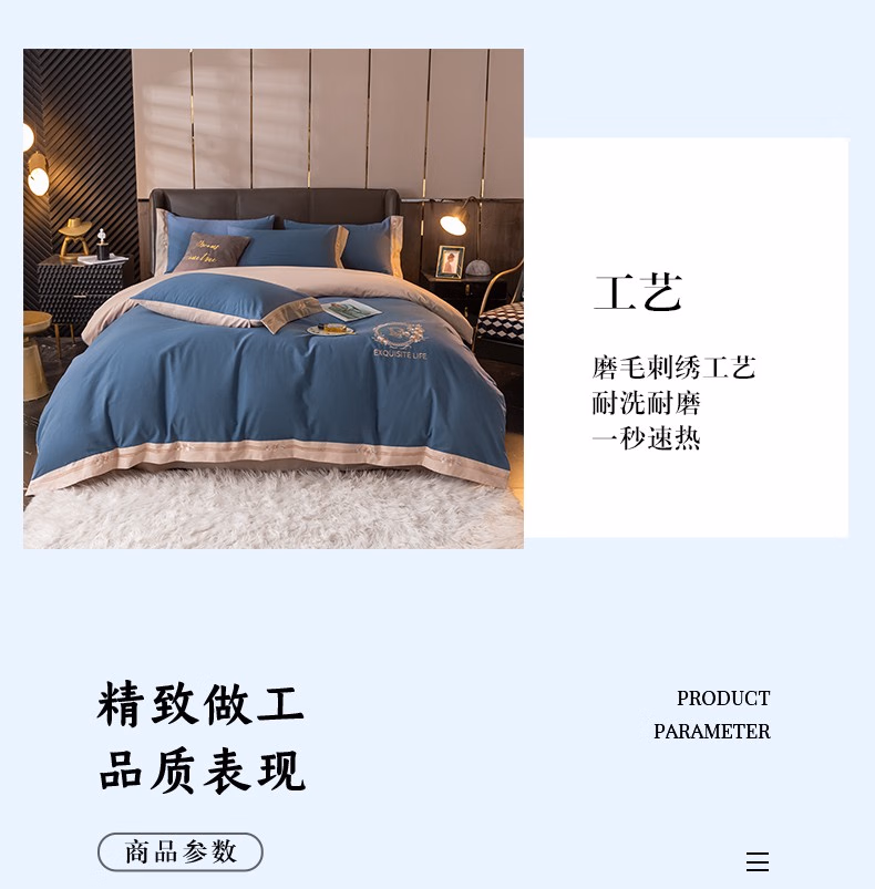 弗切尔珀榕 FHJC220583 200*230cm 纯色磨毛绣花暗香疏影系列四件套 (计价单位:套) 风暴蓝拼耀砂金