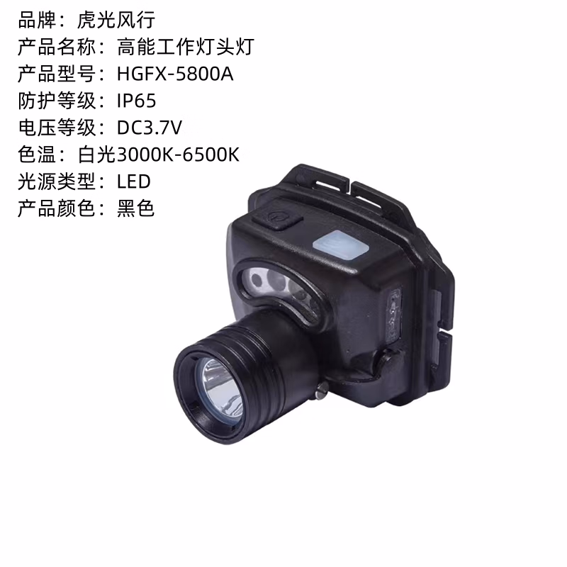 虎光风行 HGFX-5800A 防护等级IP65 电压等级DC3.7V 白光3000K-6500K 光源类型LED 高能工作灯 头灯 1.00 台/个 (计价单位:个) 黑色