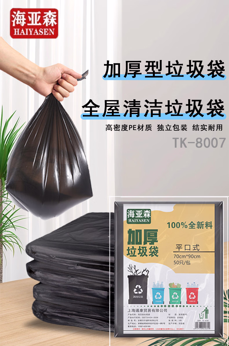 海亚森 TK-8007 90cm*100cm 10只/包 50包/箱 加厚型垃圾袋 (计价单位:包) 黑色 2包起订