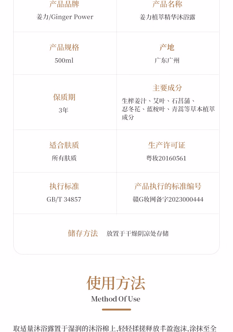姜力 500ml/瓶 生姜植萃精华 沐浴露 (计价单位:瓶)