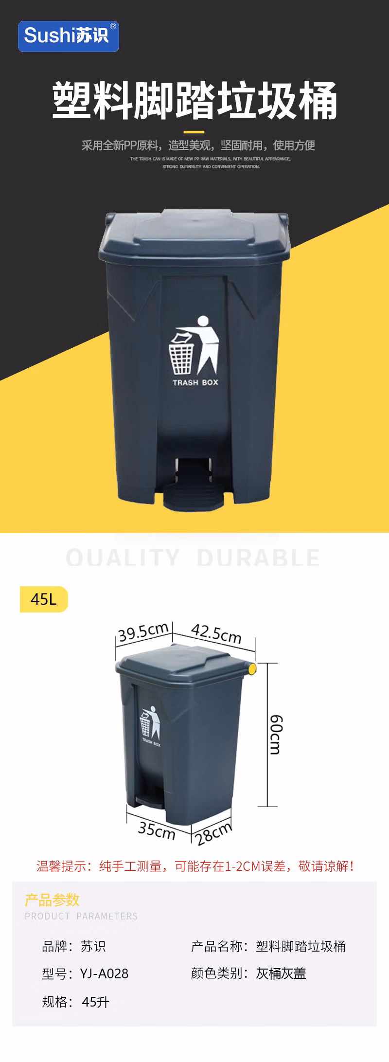 苏识 YJ-A028 45升 塑料脚踏垃圾桶 (计价单位:个) 灰桶灰盖