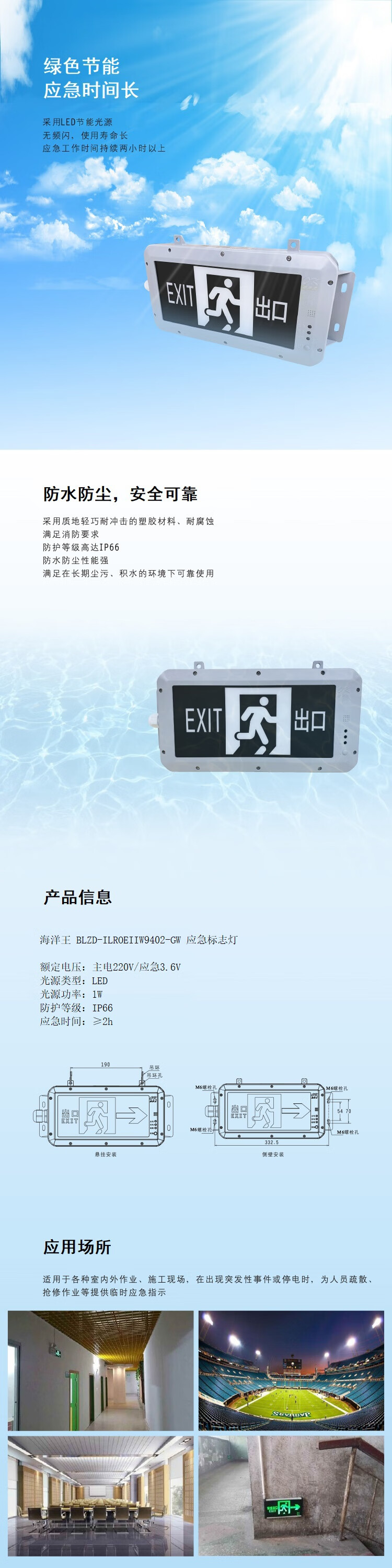 海洋王 BLZD-ILROEIIW9402-GW 1W IP66 应急时间≥2h 主电220V/应急3.6V 应急标志灯 (计价单位:盏) 灰色