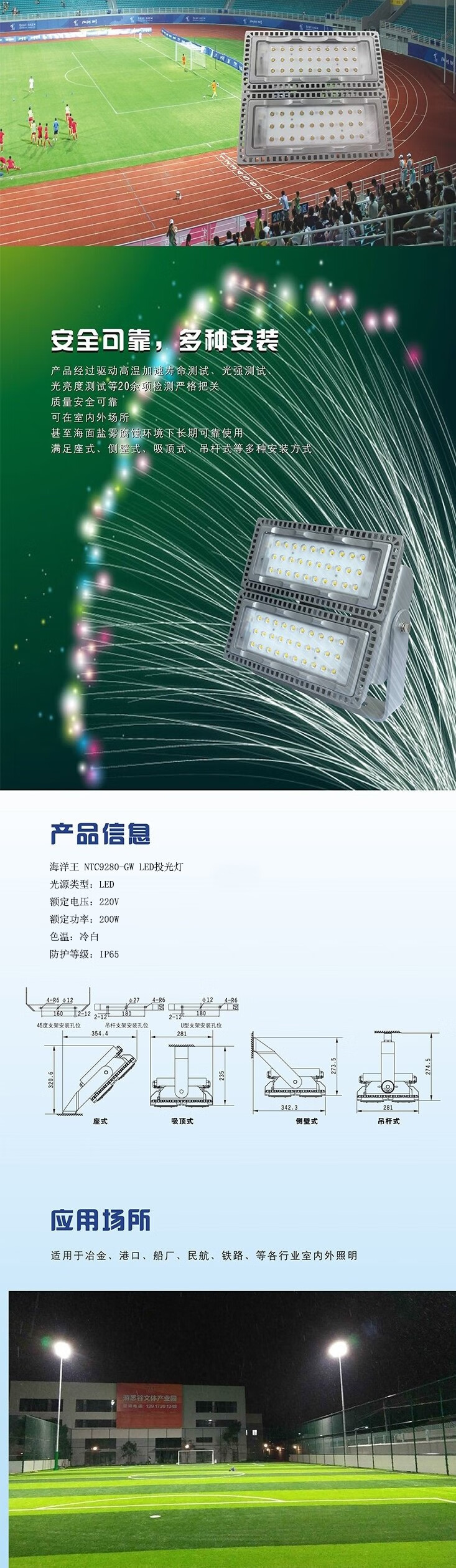 海洋王 NTC9280-GW 200W IP65 220V 冷白 LED LED投光灯 (计价单位:个) 银色