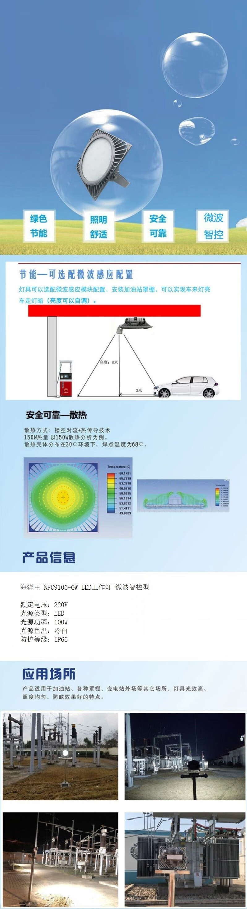 海洋王 NFC9106-GW 微波智控型 100W IP66 220V 冷白 LED LED工作灯 (计价单位:个) 银色