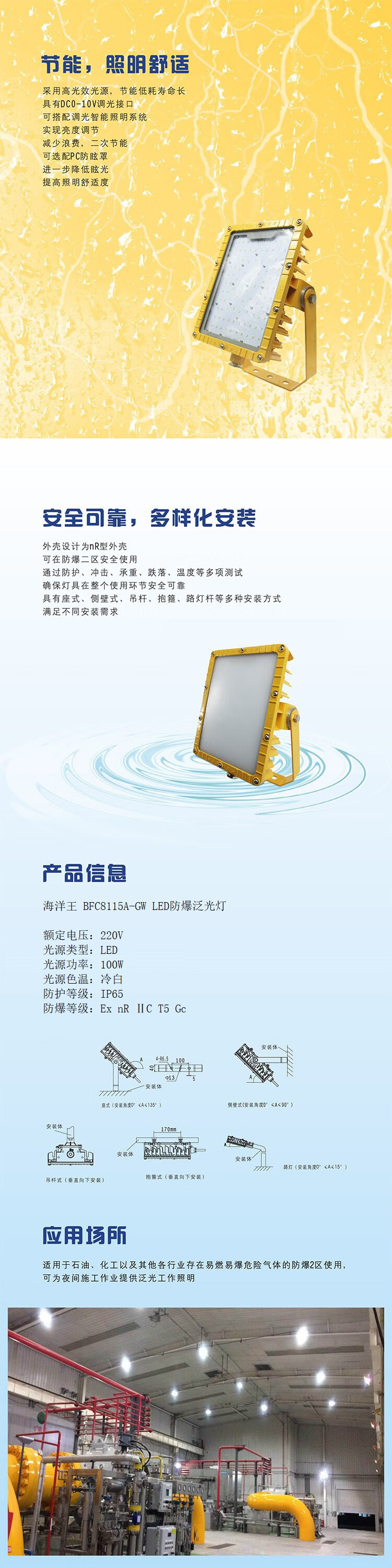 海洋王 BFC8115A-GW 100W IP65 Ex nR ⅡC T5 Gc 220V 冷白 LED LED防爆泛光灯 (计价单位:盏) 黄色