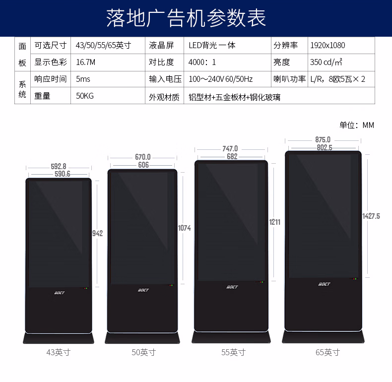 中银(BOCT) RT5510 55英寸 广告机 (计价单位:台) 黑色
