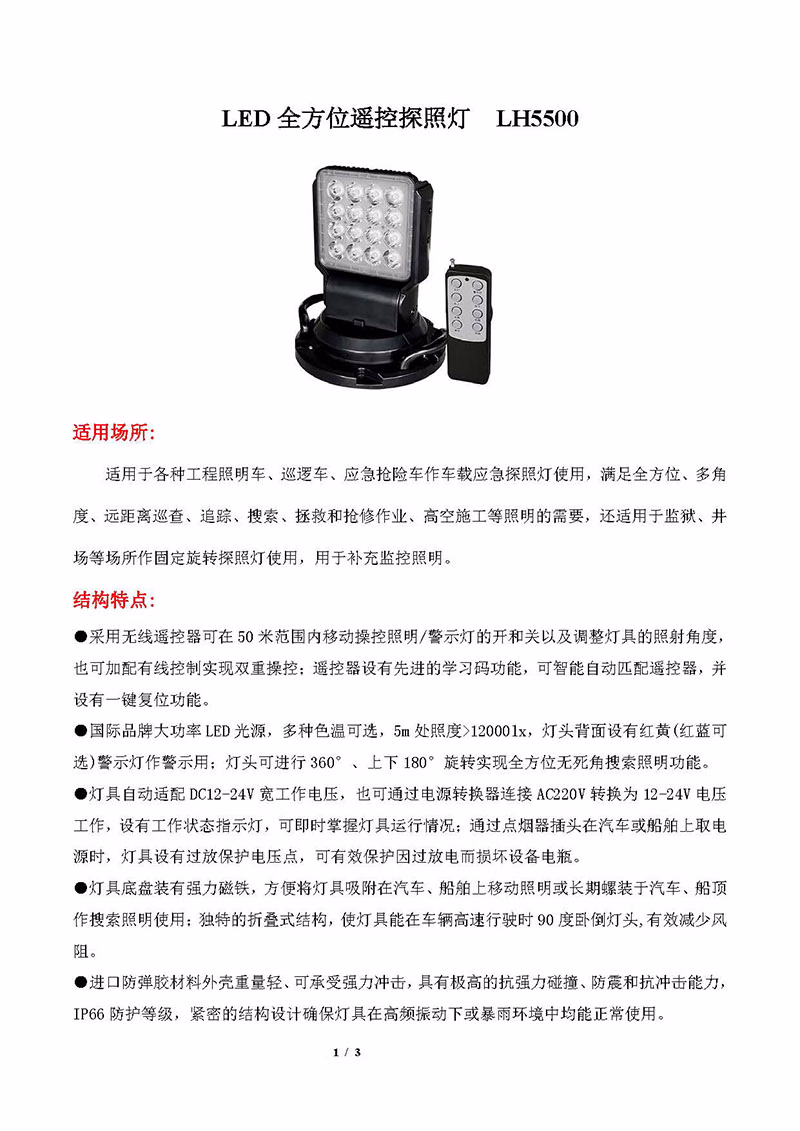 领航电器(LHDQ) LH5500 LED全方位遥控探照灯 80W 探照灯 (计价单位:盏) 黑色