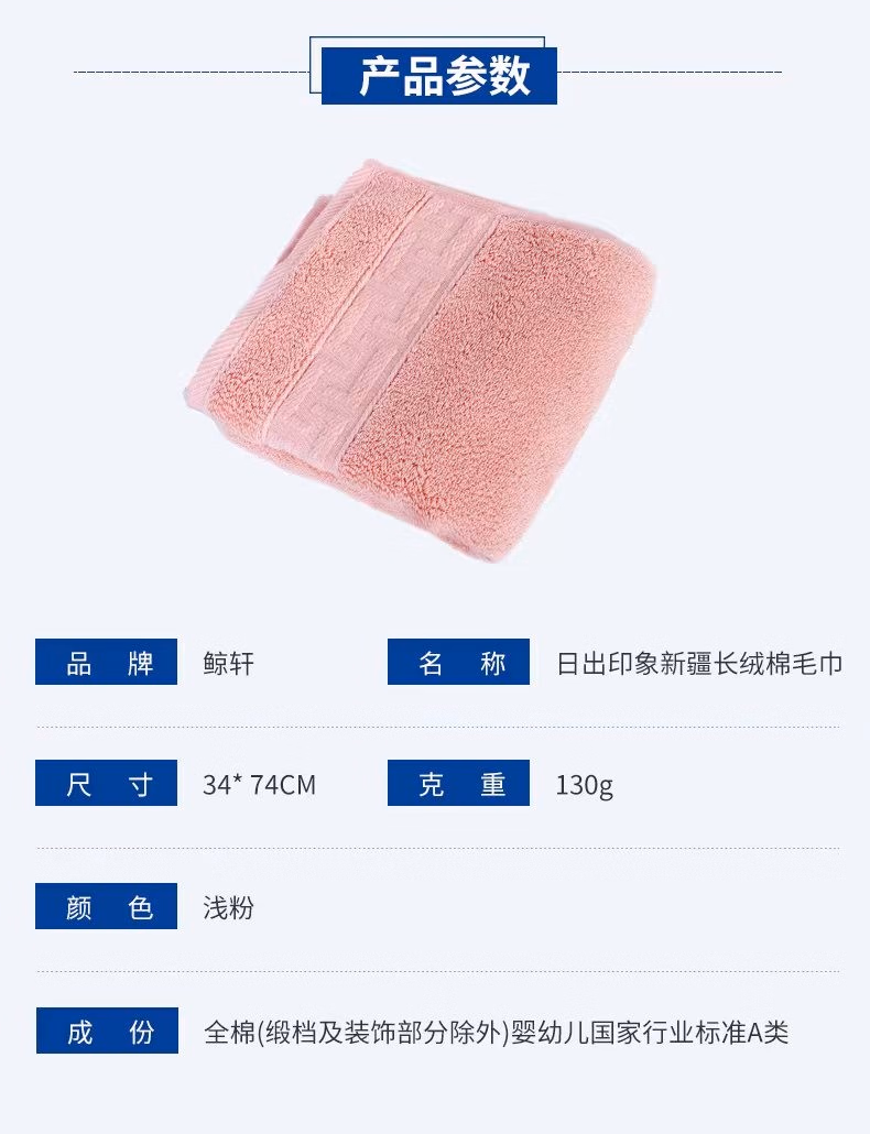 鲸轩 M803 34*74cm 130g 毛巾 (计价单位:条) 浅粉色