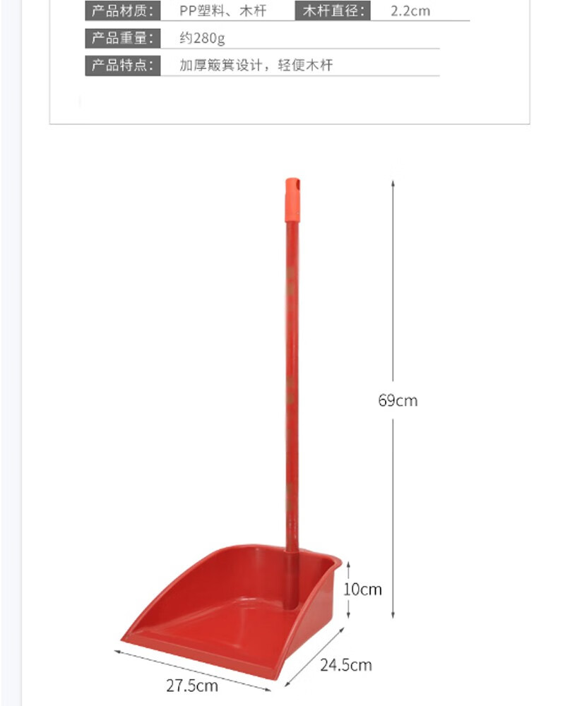 晟泰邦 塑料垃圾铲木杆塑料垃圾铲除尘奋斗加厚簸箕 红色 FH-1248 单位:个