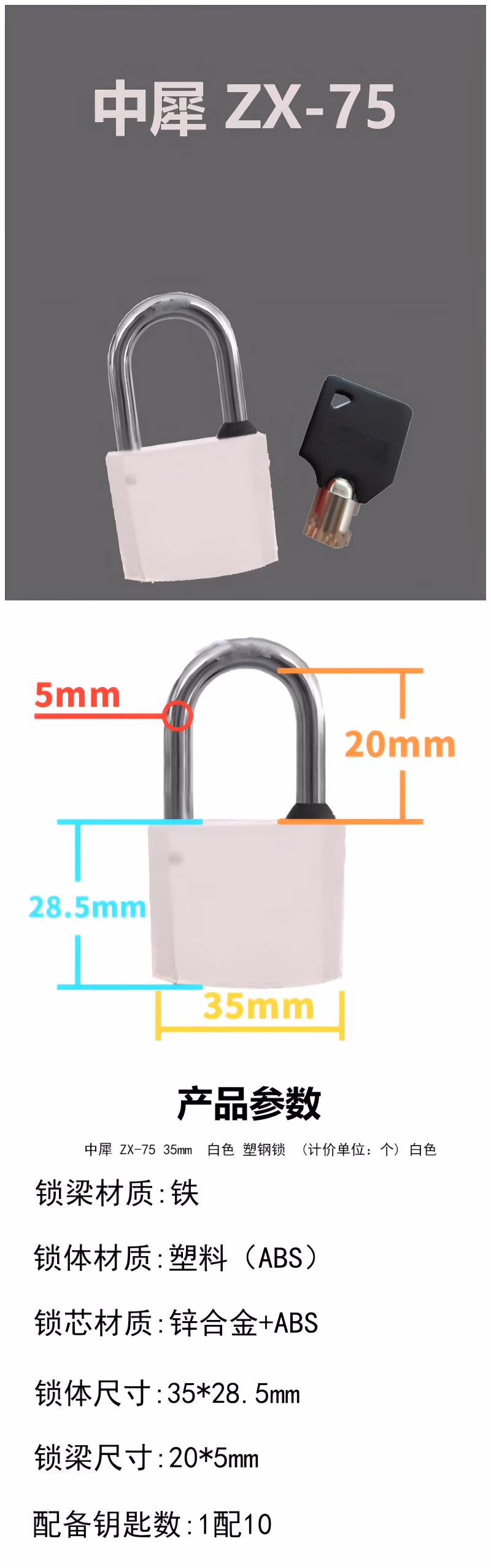 中犀 ZX-75 35mm 白色 塑钢锁 挂锁 (计价单位:个) 白色