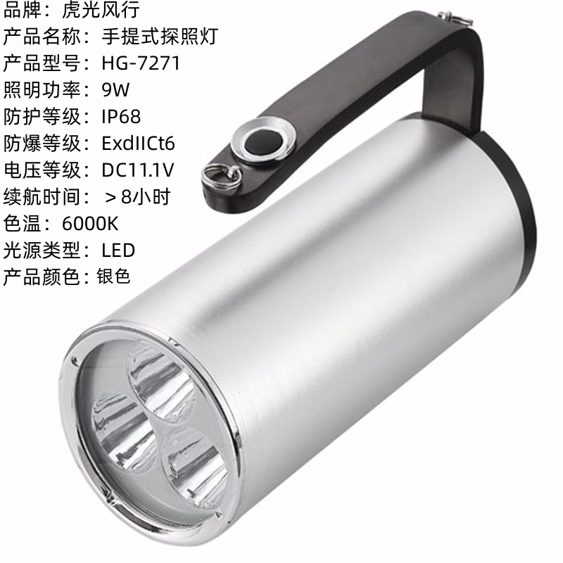 虎光风行 HG-7271 9W、IP68、ExdIICt6、续航时间>8小时、DC11.1V、6000K、LED 银 手持工作灯 1.00 盏/套 (计价单位:套) 银色