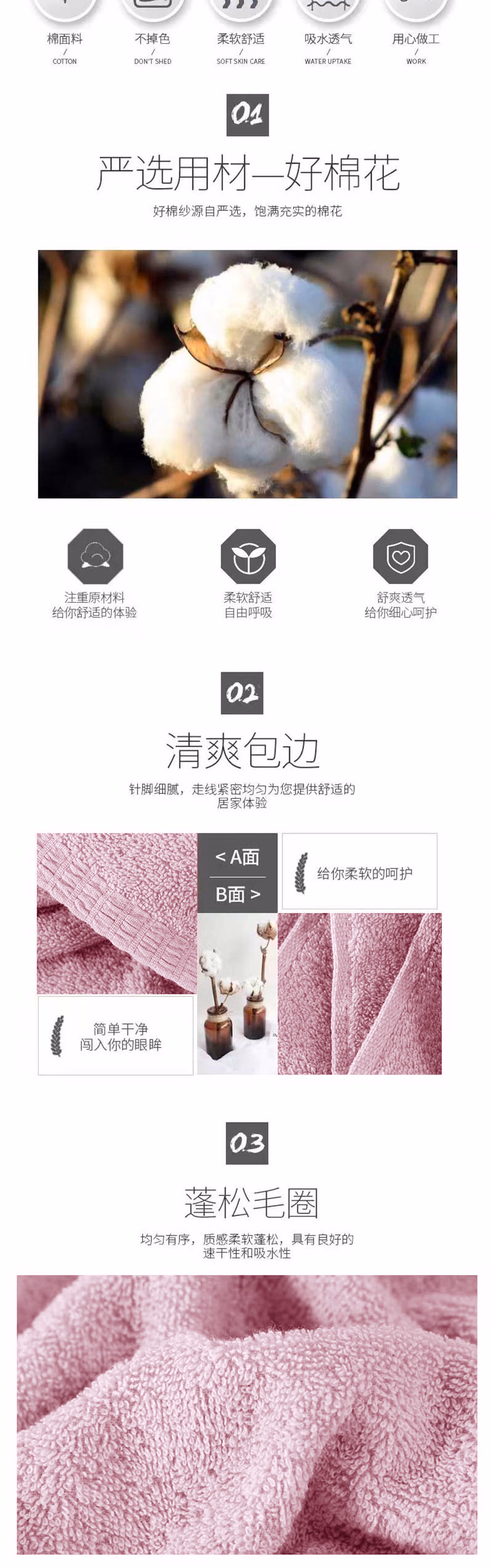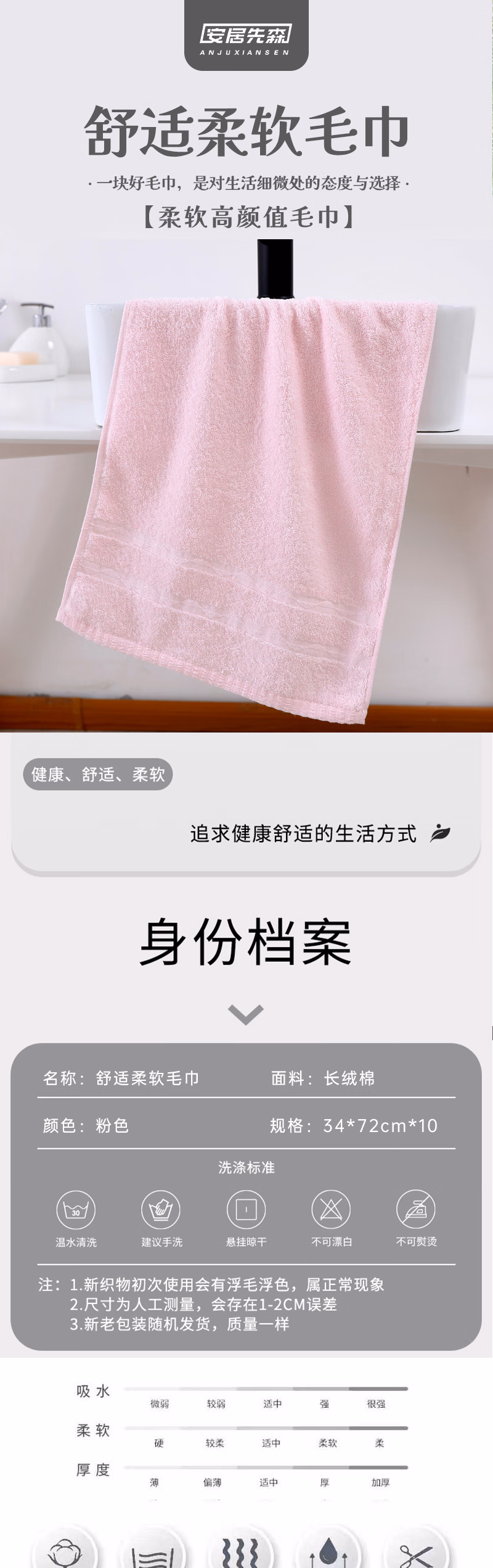 安居先森 an2402103 34*72cm 毛巾 10.00 条/套 (计价单位:套) 粉色