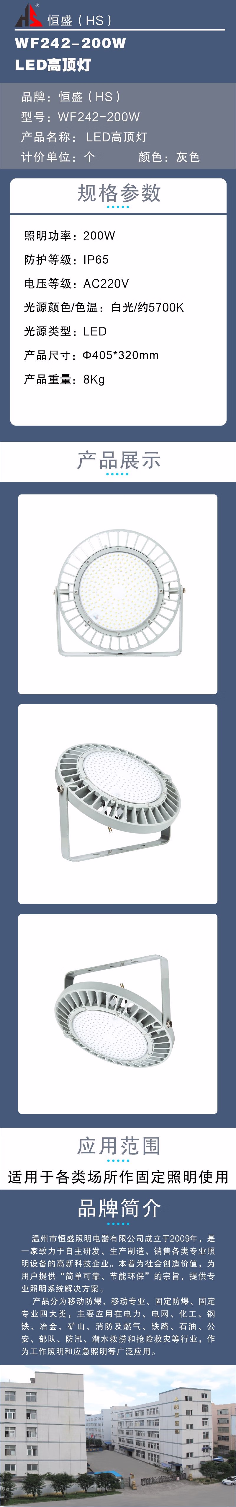恒盛(HS) WF242-200W 200W IP65 电压等级:AC220V 白光/约5700K LED LED高顶灯 (计价单位:个) 灰色