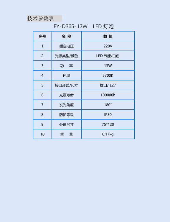 鄂远 EY-D365 13 IP30 5700K 灯泡 1.00 个/盏 (计价单位:盏) 白色