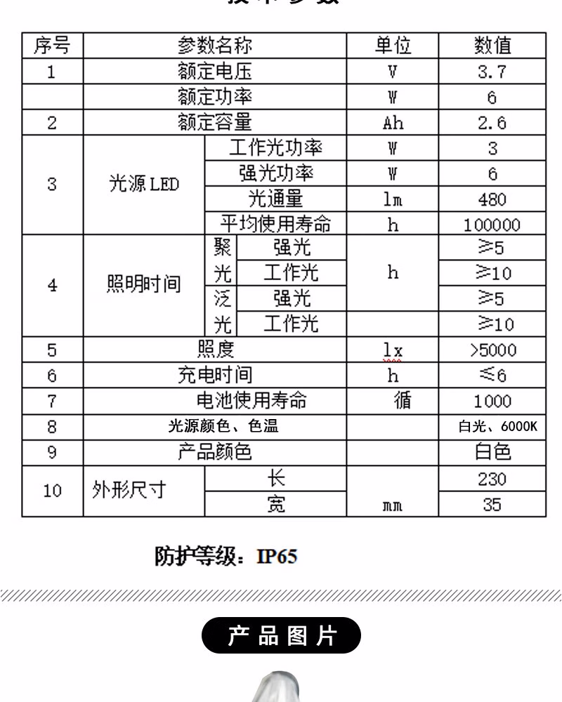 吉特(GT) TME2100,6W,IP65,电压:3.7V,白光,6000K,LED 棒管灯 1.00 盏/套 (计价单位:套) 白色
