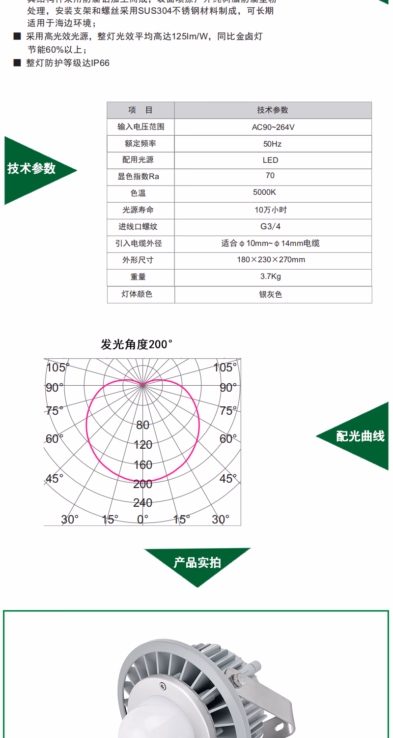 吉特(GT) BG8602S-50W-200° 50W IP66 Ex d ⅡC T5/T6 Gb 电压AC90~264V 色温5000K LED防爆灯 (计价单位:盏) 银灰色