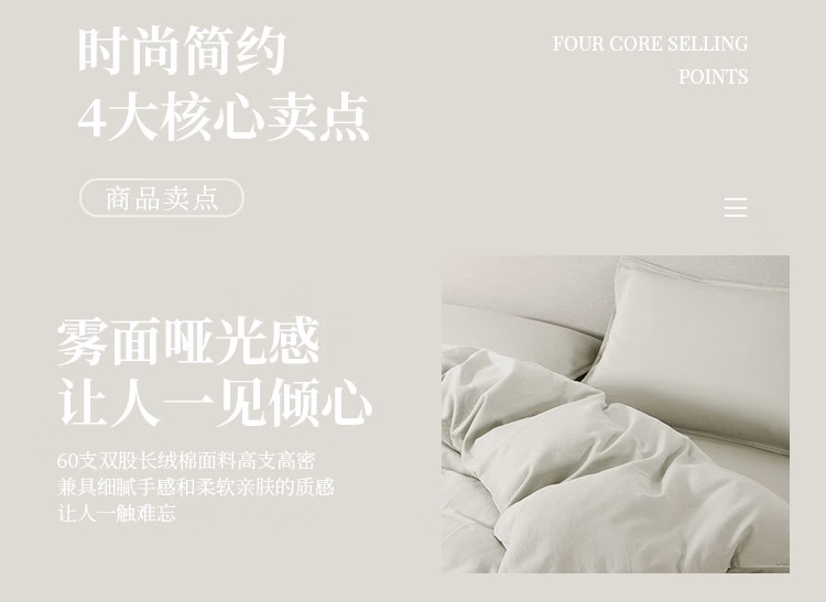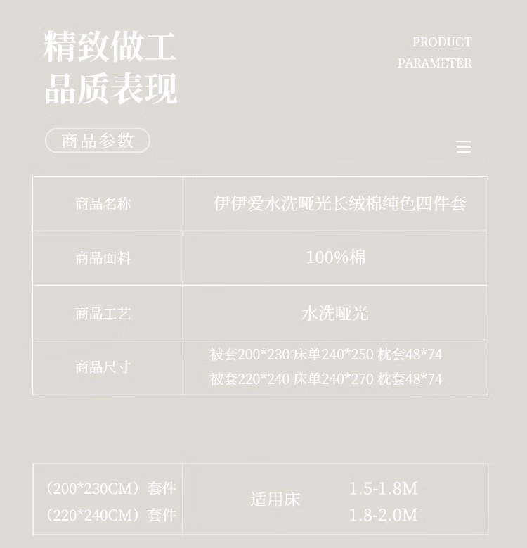 伊伊爱 TJ0WL02201560 /200*230cm水洗哑光长绒棉海盐白纯色四件套 床上套件 (计价单位:套) 海盐白
