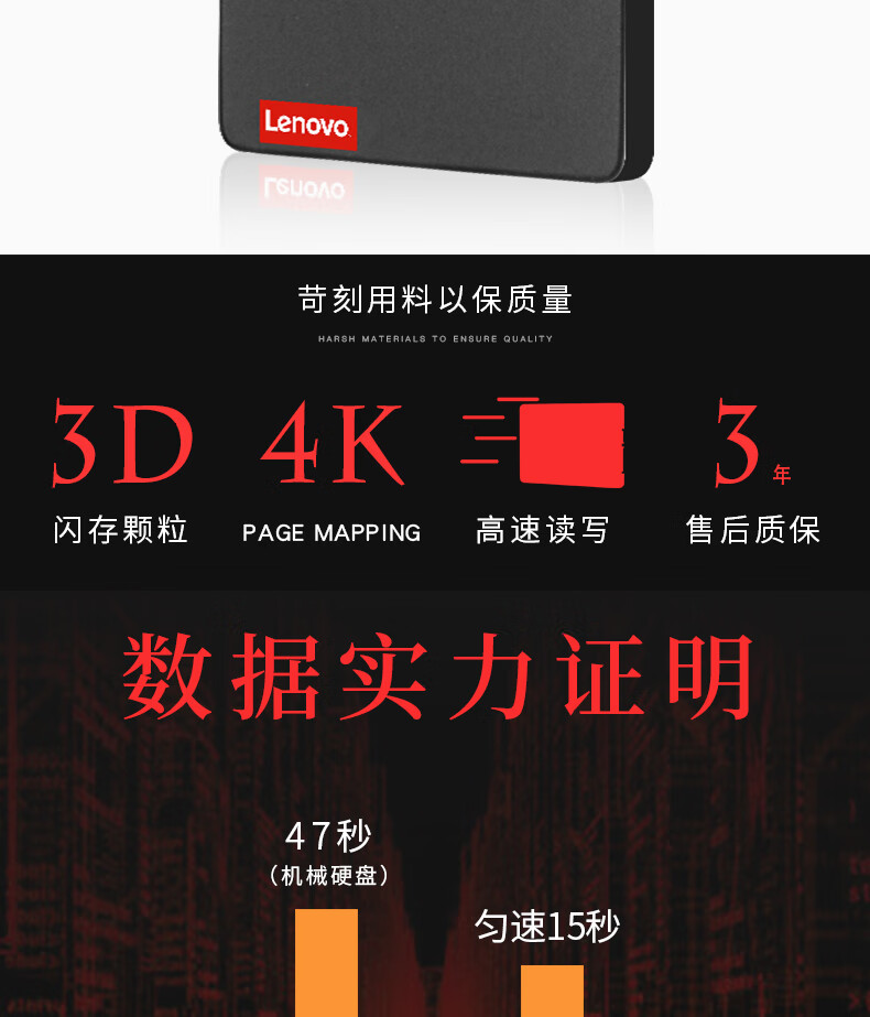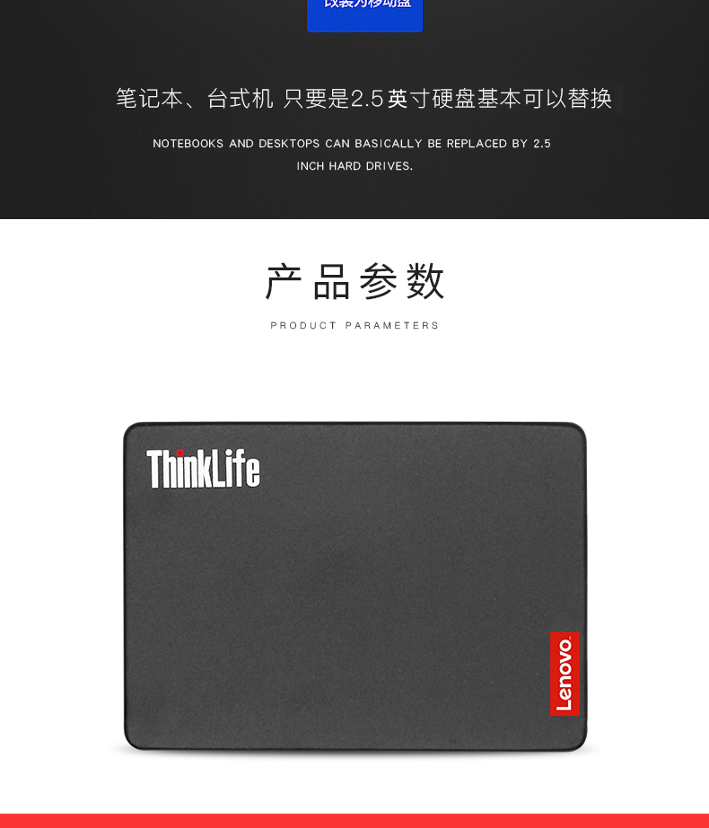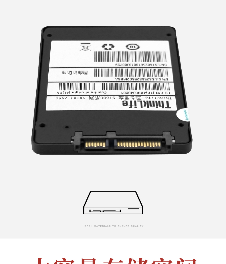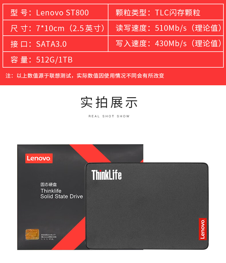 联想(Lenovo)ST800系列 SSD固态硬盘 SATA接口 2.5英寸 512G 台式机笔记本电脑升级加装 单位:个