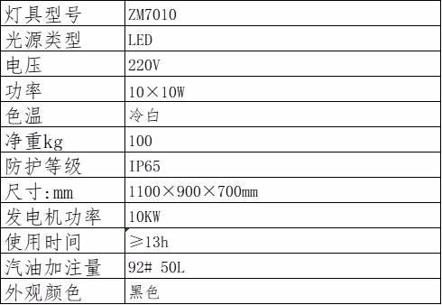 晫安联 ZM7010 10×10W IP65 220V 续航时间≥13h LED 冷白 多功能升降式照明装置 (计价单位:台) 黑色
