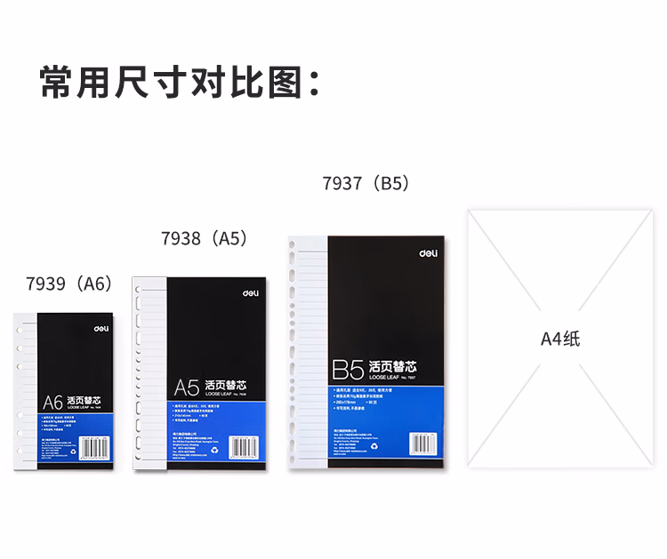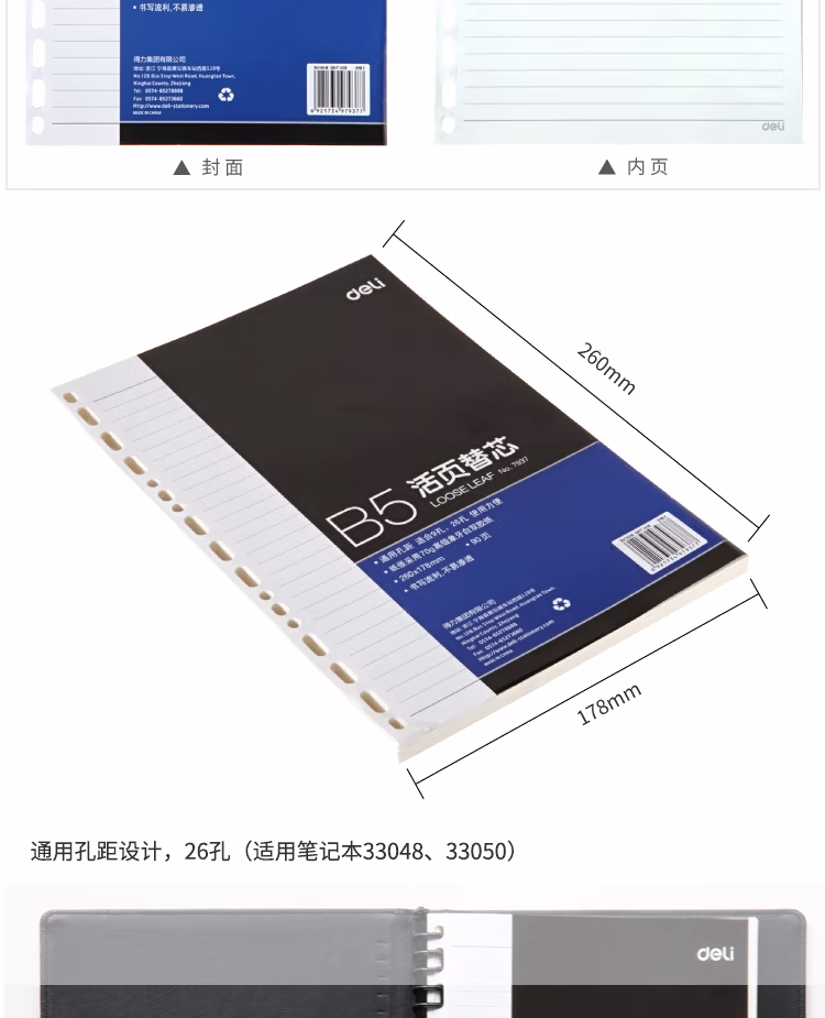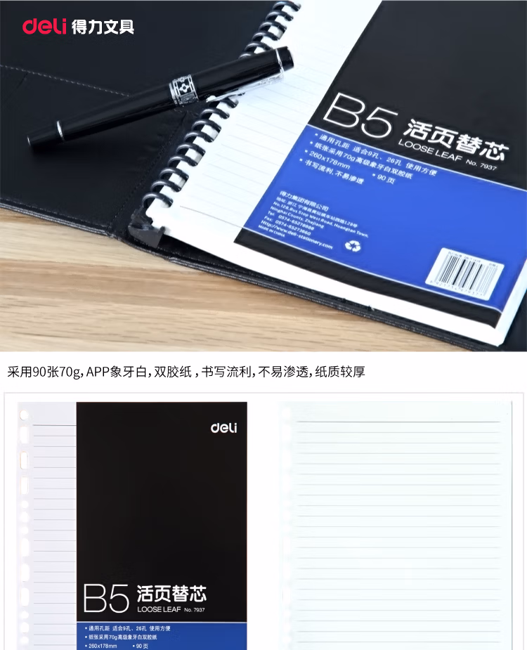 得力(deli) 7937 B5 260x178mm 90页/本 活页芯 (计价单位:本) 白色
