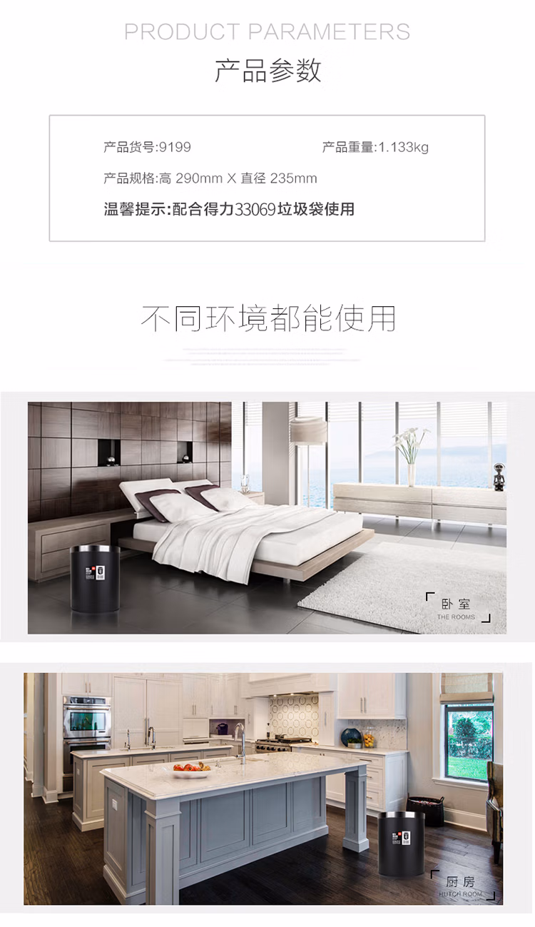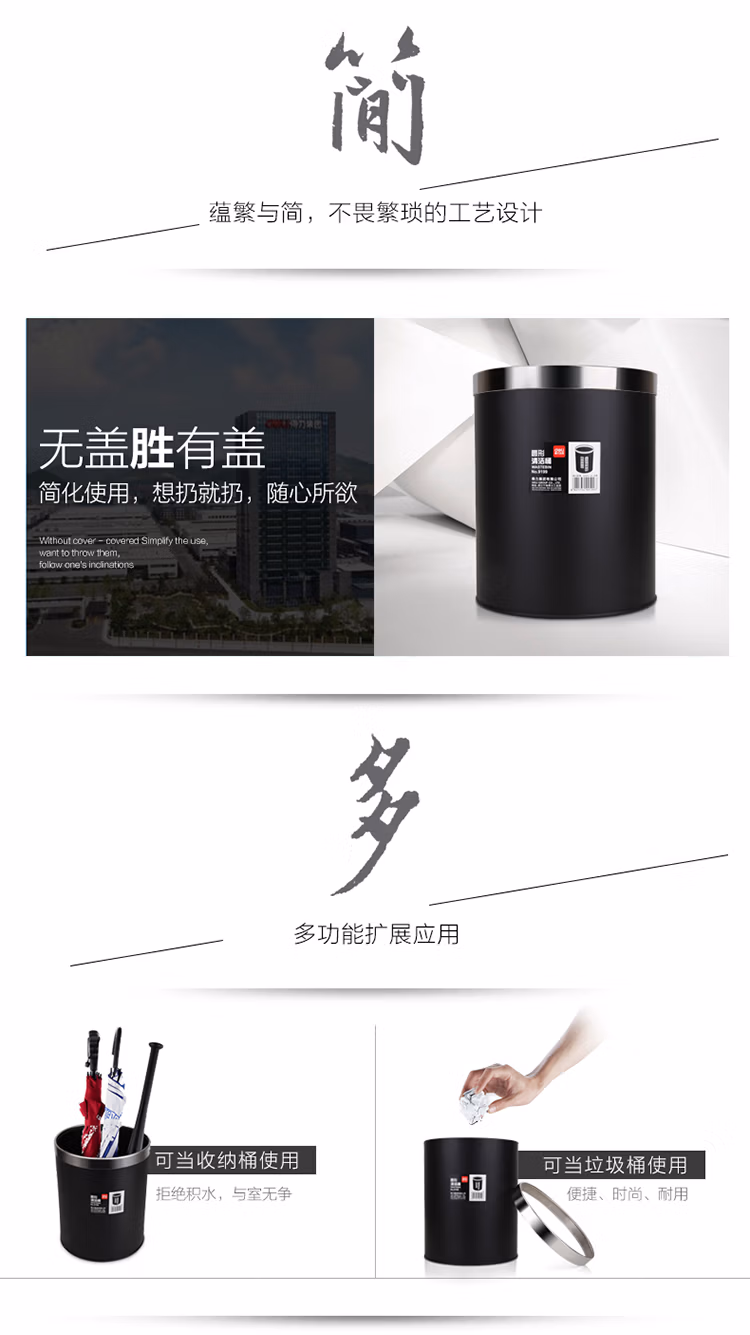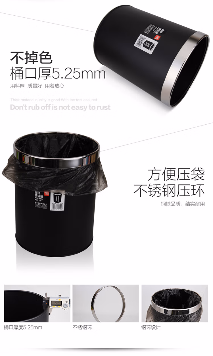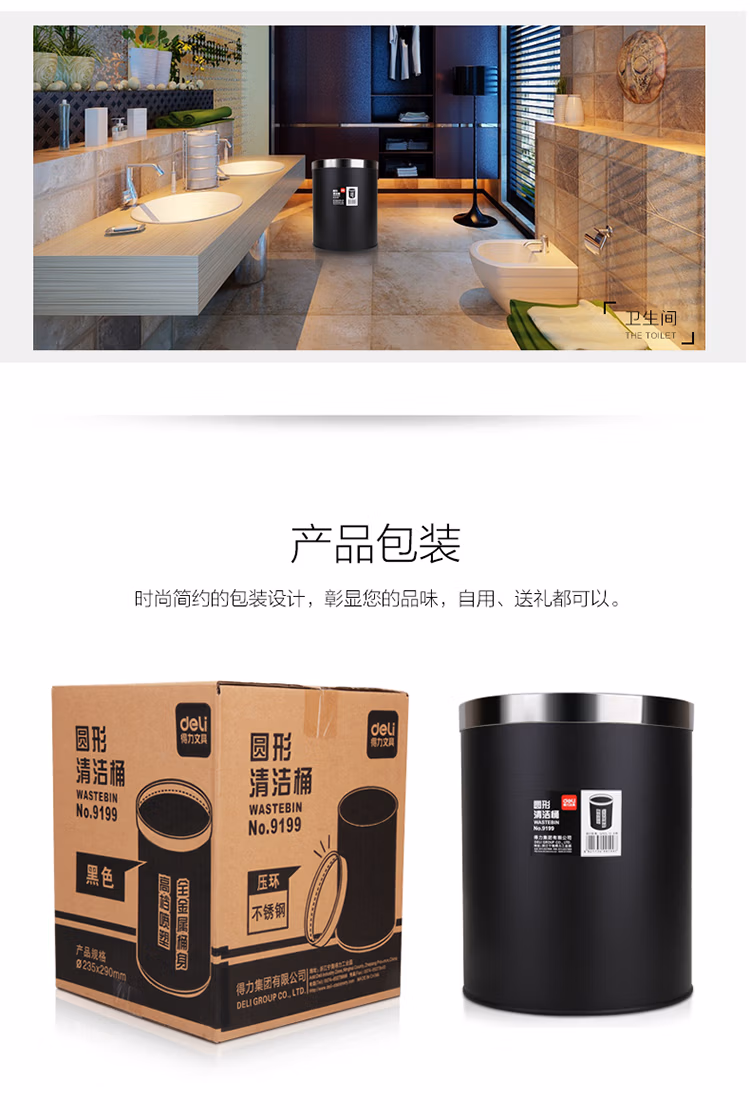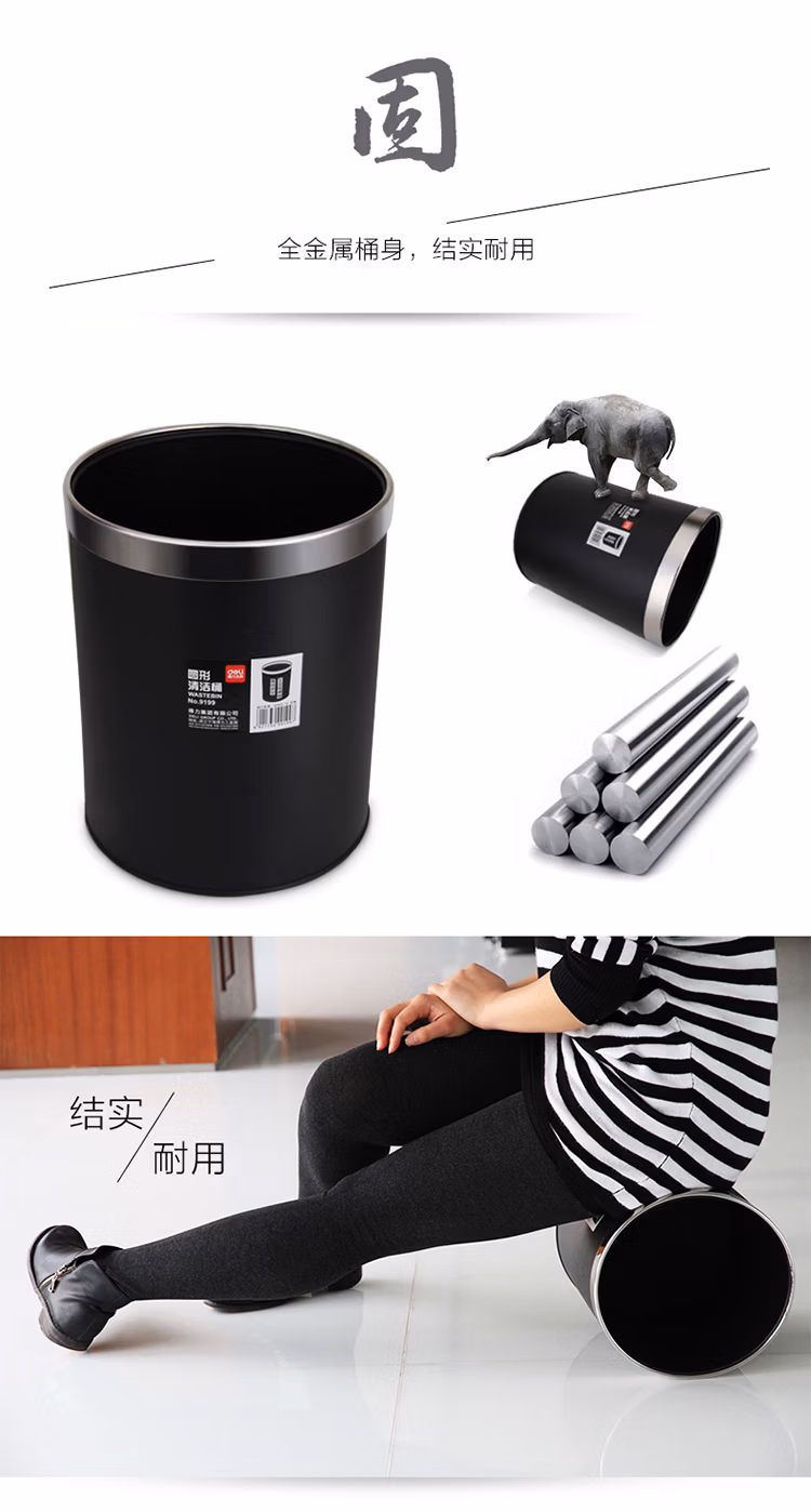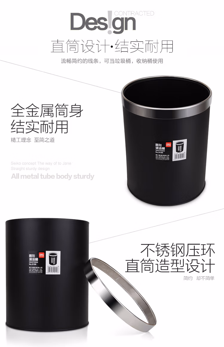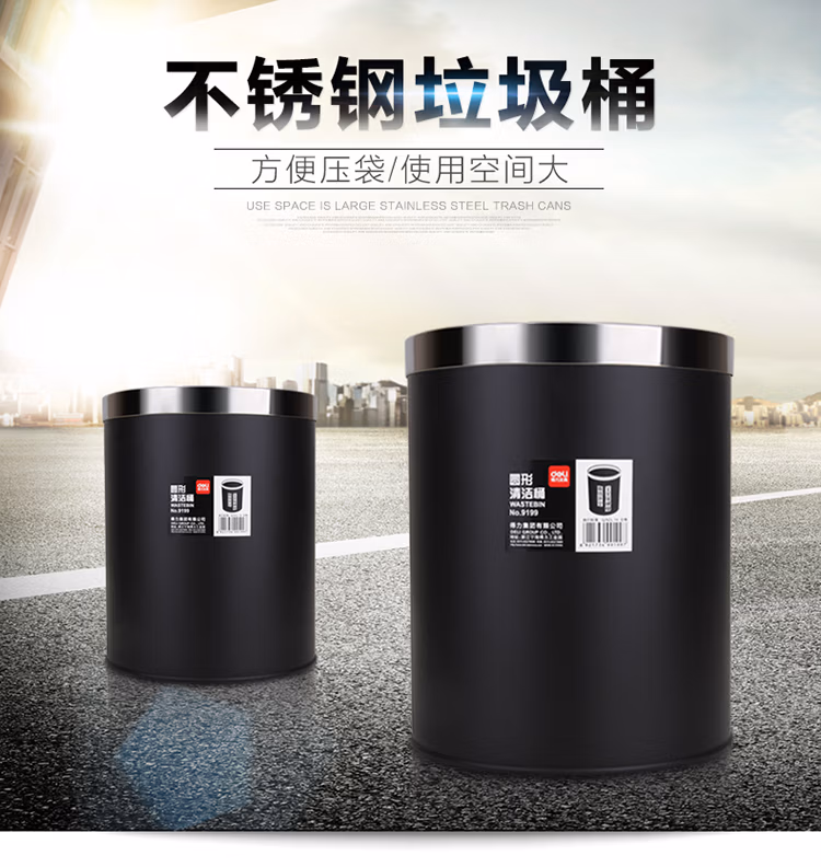 得力(deli) 9199 带压圈 圆形不锈钢垃圾桶 (计价单位:个) 黑色