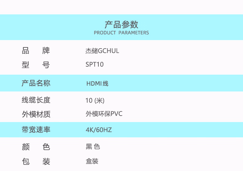杰储(GCHUL) SPT10 10米 HDMI线 视频信号线 (计价单位:根) 黑色