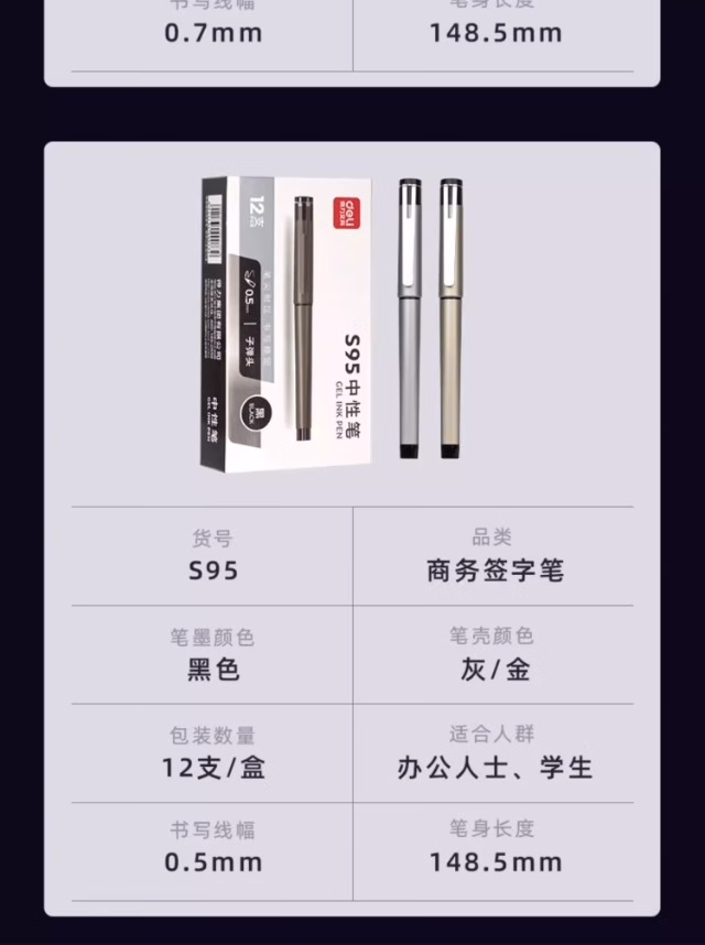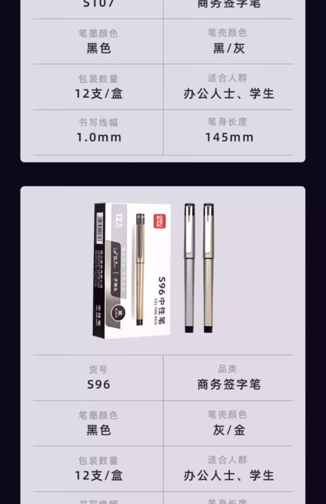 得力 S95 0.5mm 中性笔 黑色 12支/盒