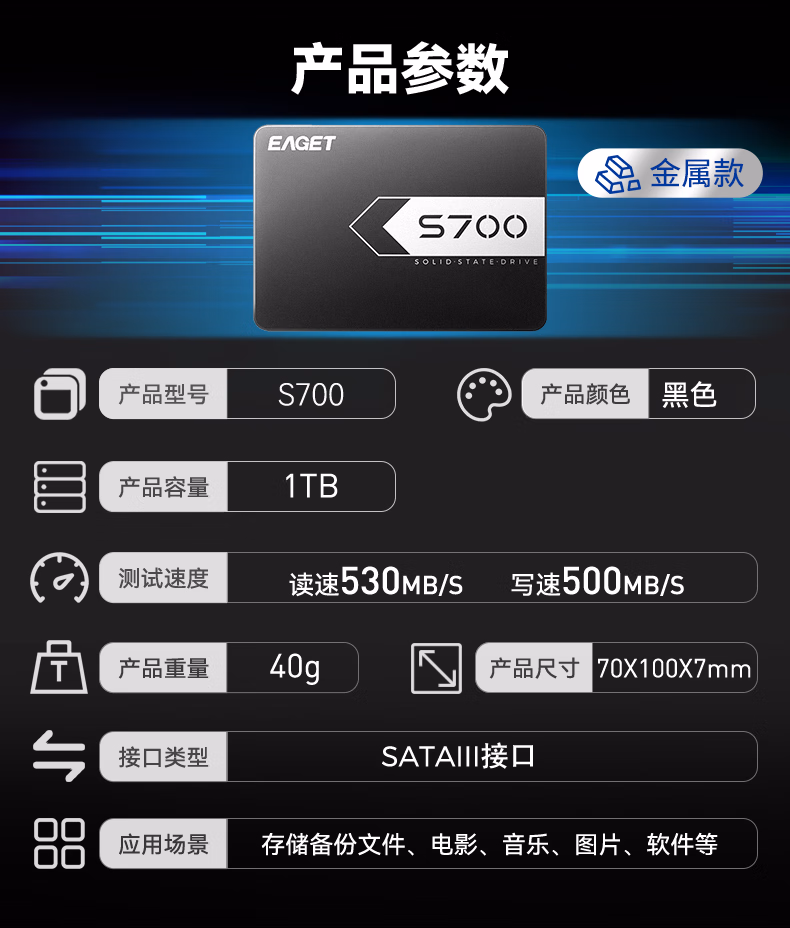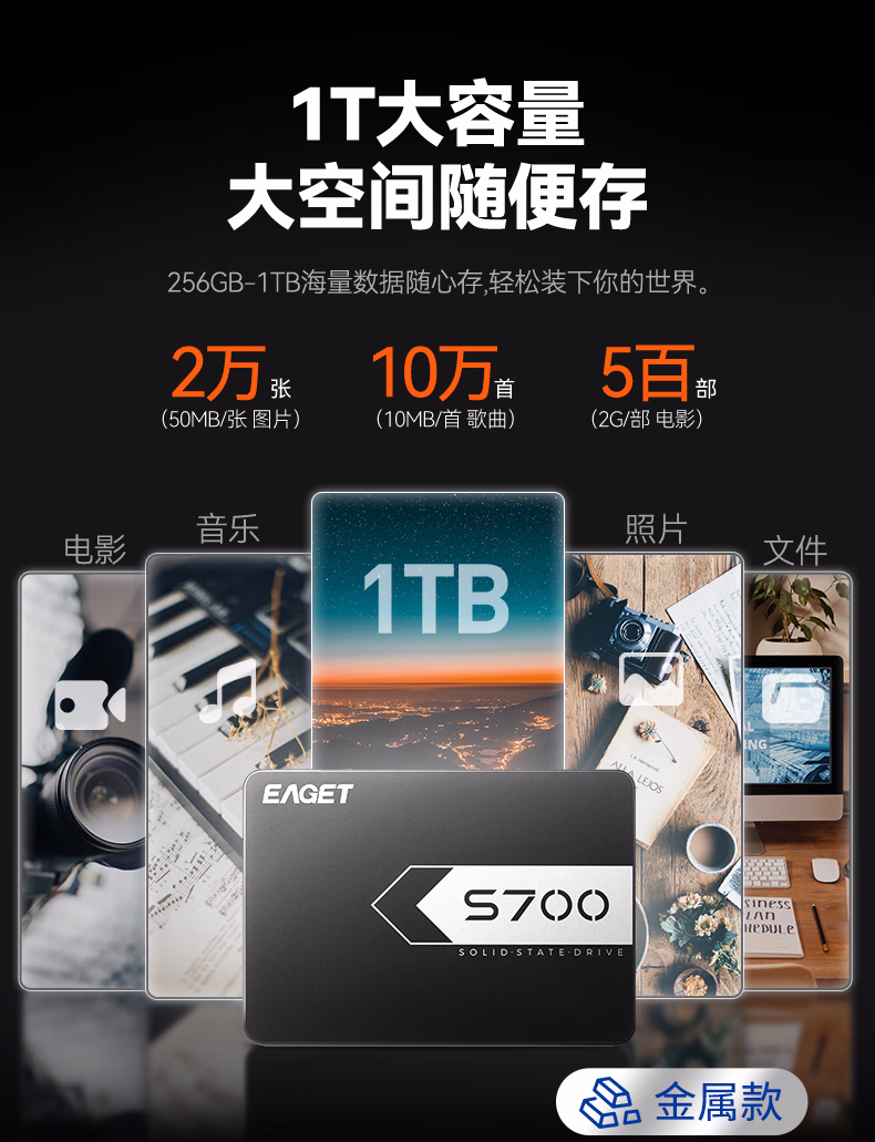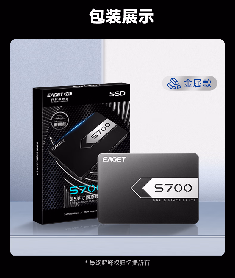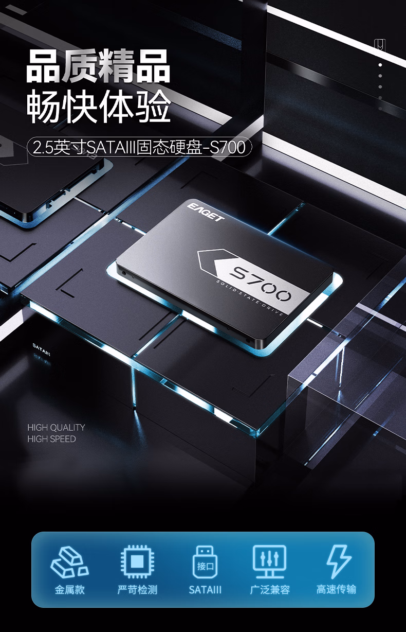 忆捷(EAGET) S700-1TB SATA3 2.5英寸 固态硬盘 (计价单位:个) 黑色