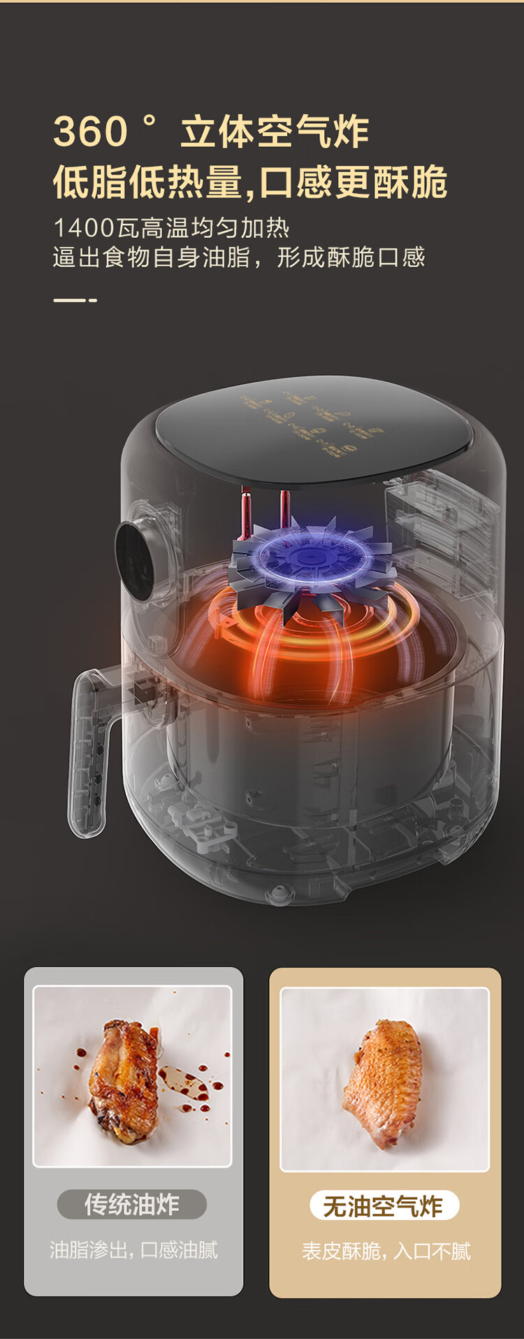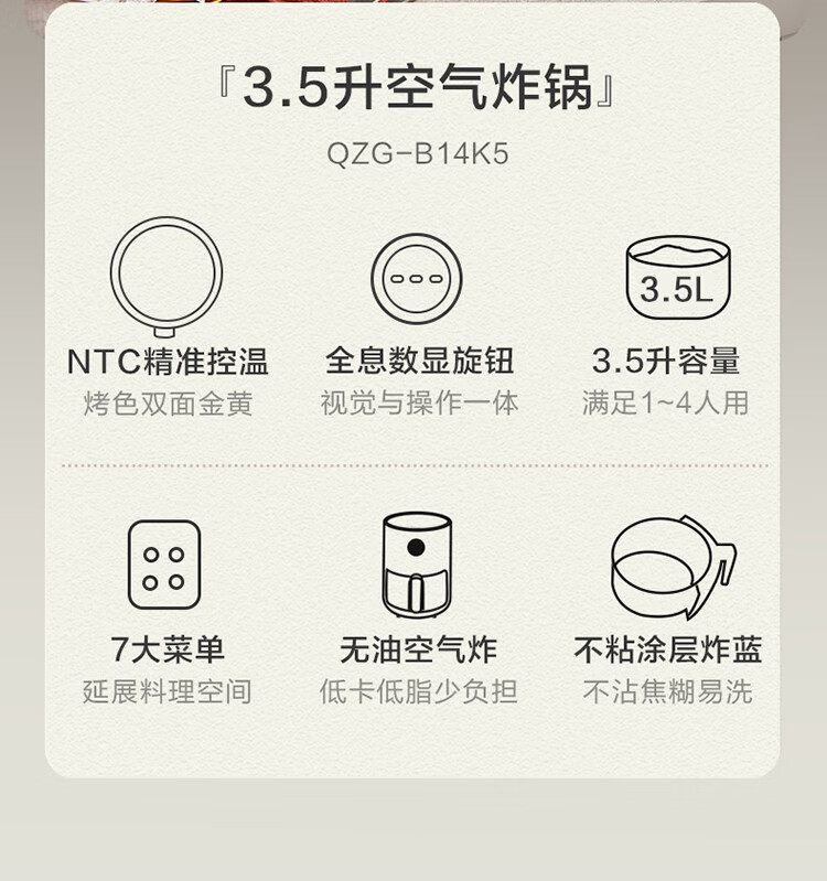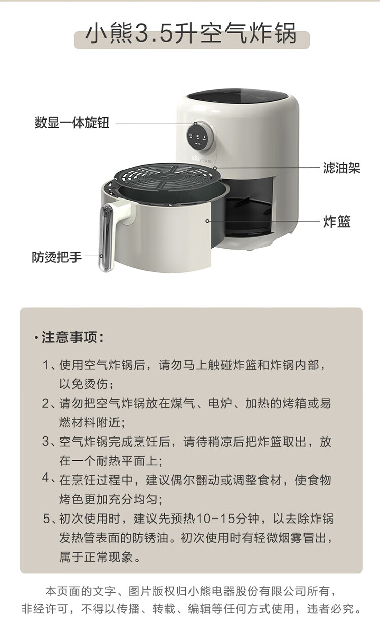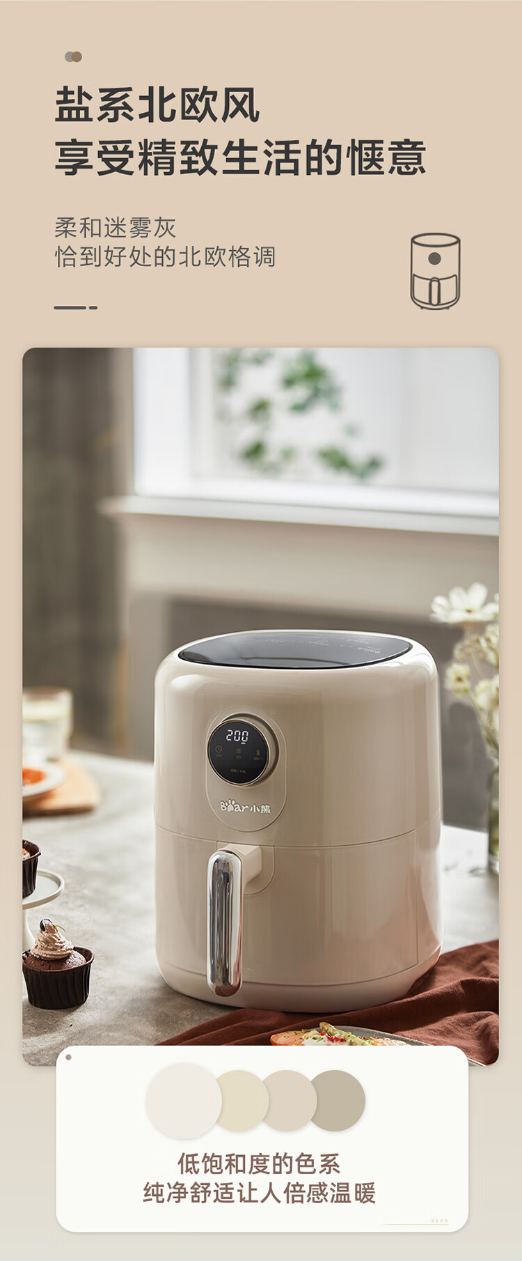 小熊(Bear)空气炸锅家用大功率无油烟低脂多功能电炸锅薯条机3.5L大容量 QZG-B14K5 单位:个