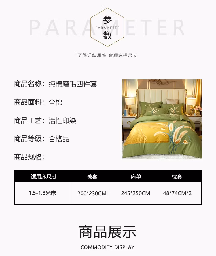 伊伊爱 TJ0HJC2000396 200*230cm纯棉磨毛 四件套 (计价单位:套) 铃兰绿