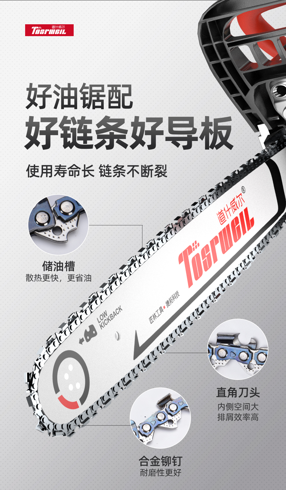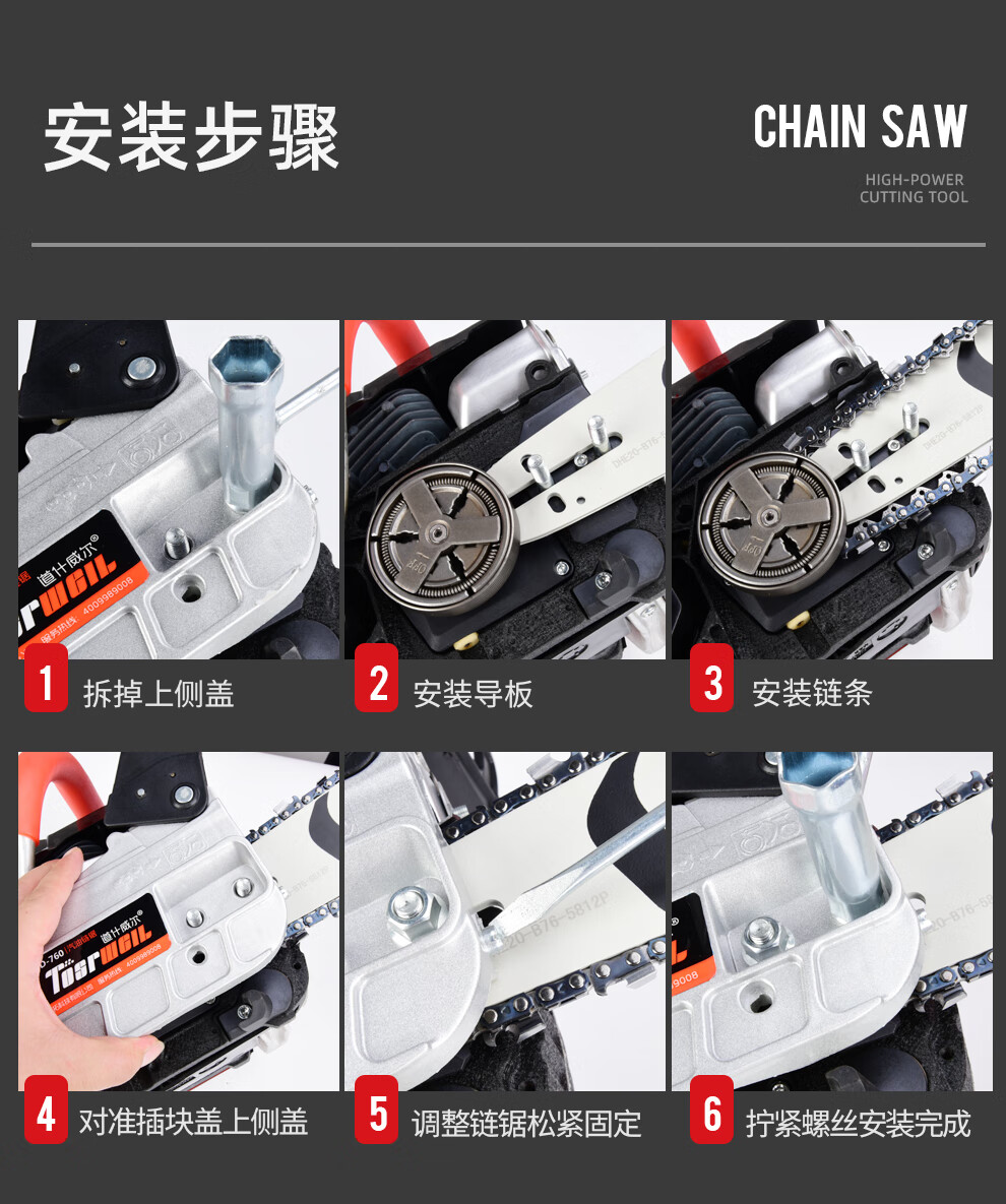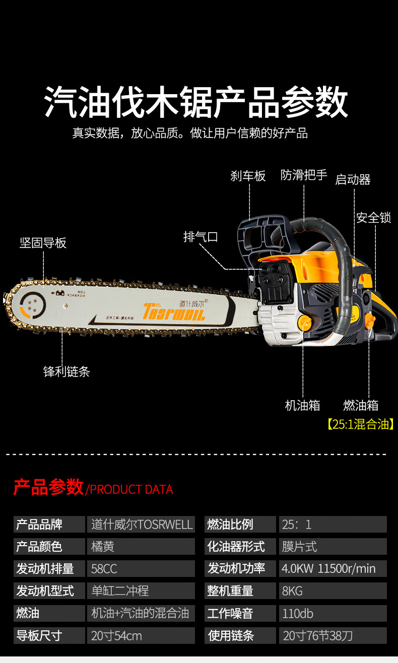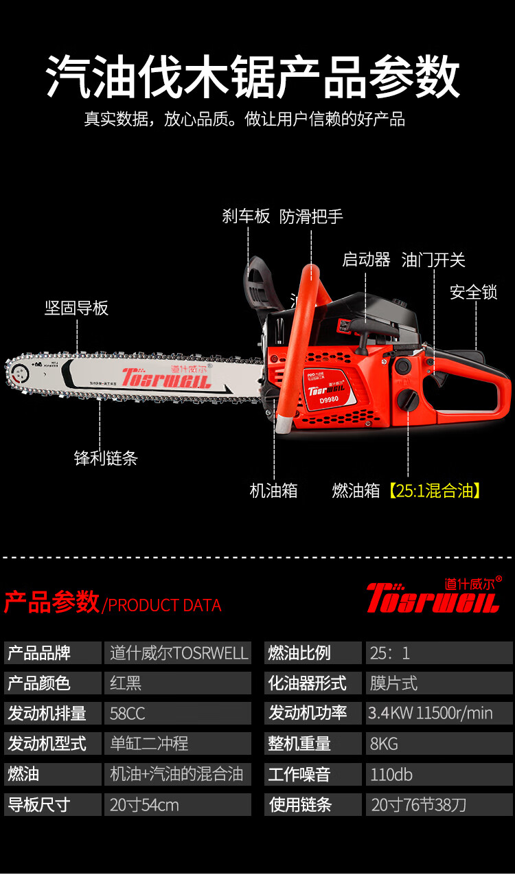 道什威尔(TOSRWELL) 德国油锯大功率户外家用多功能汽油锯 林业森林伐木锯 砍树破冰电锯切割机 道什760【大功率高配汽油锯】配1根精品原装链条 单位:个