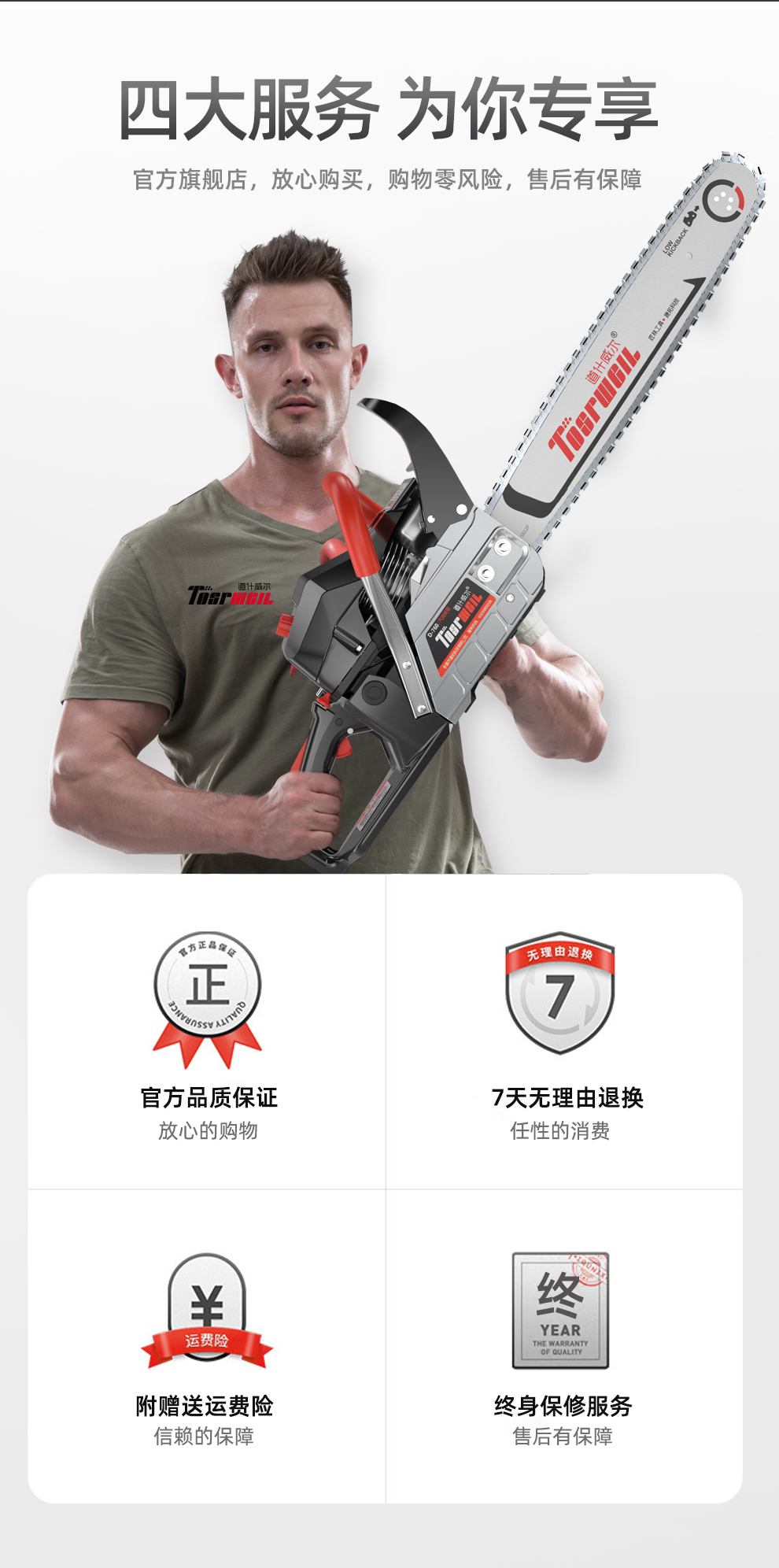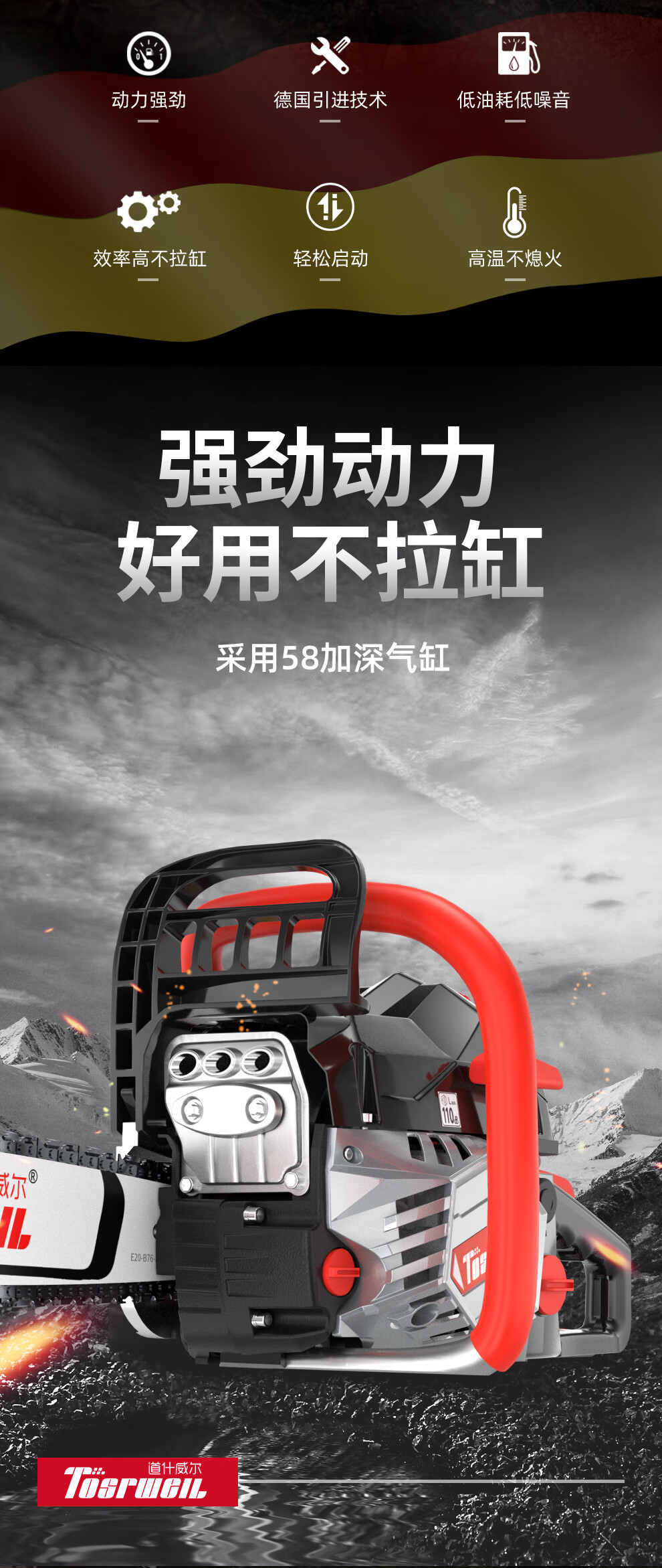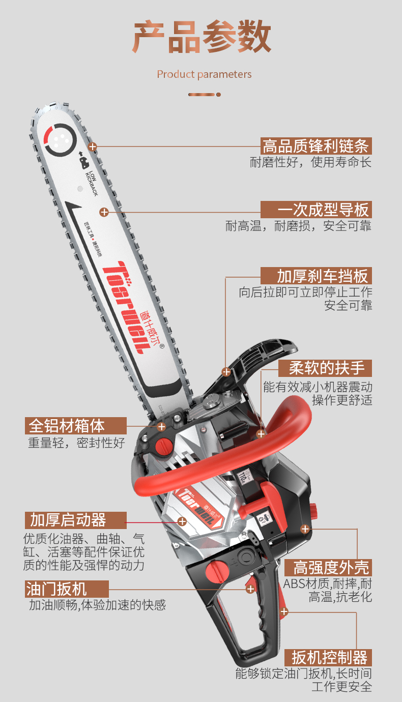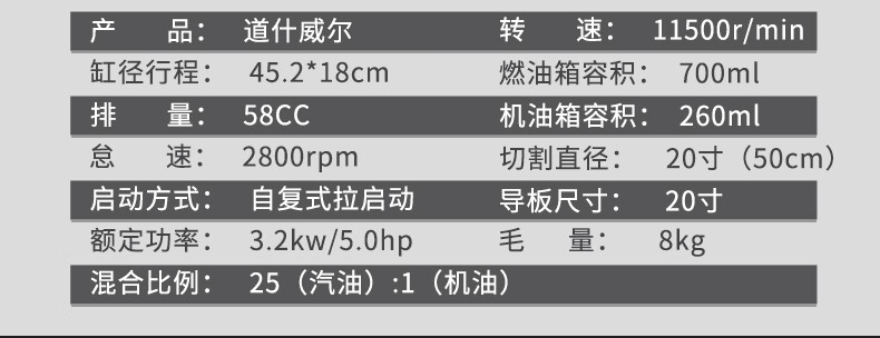 道什威尔(TOSRWELL) 德国油锯大功率户外家用多功能汽油锯 林业森林伐木锯 砍树破冰电锯切割机 道什760【大功率高配汽油锯】配1根精品原装链条 单位:个