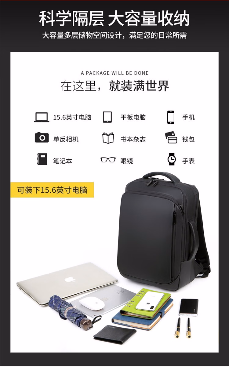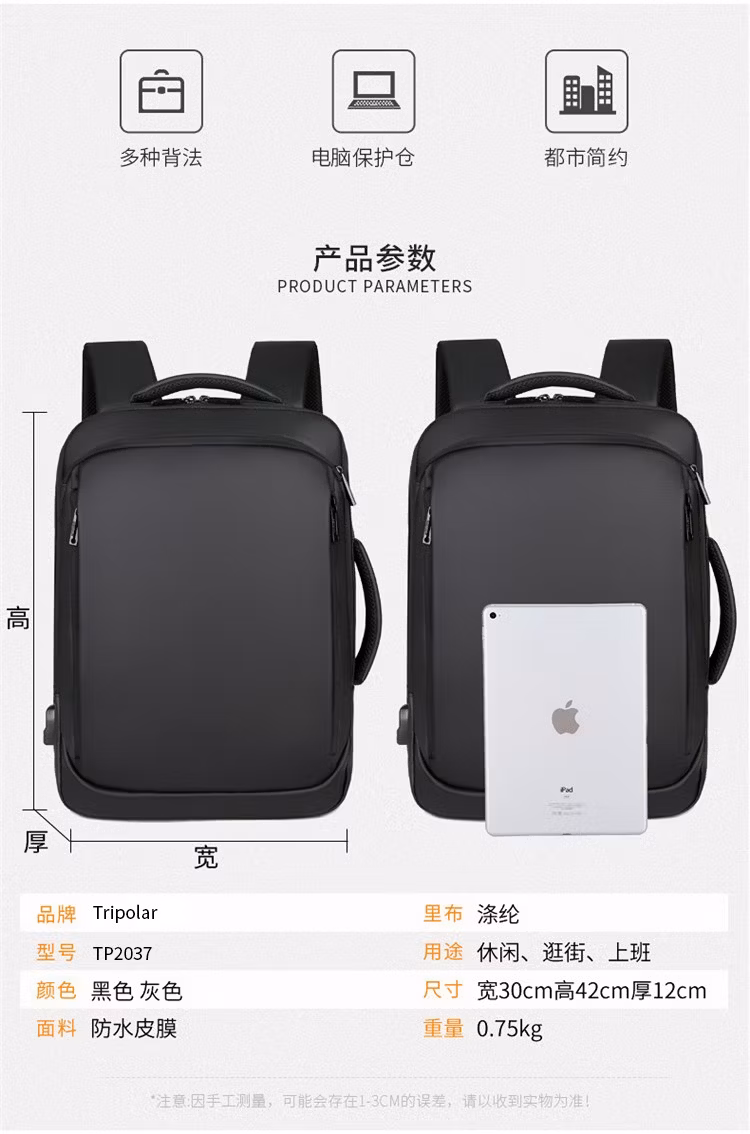 三极户外(Tri-Polar) TP2037商务双肩包男女多功能旅行背包电脑包防水学生书包灰色 双肩包 (计价单位:个) 灰色