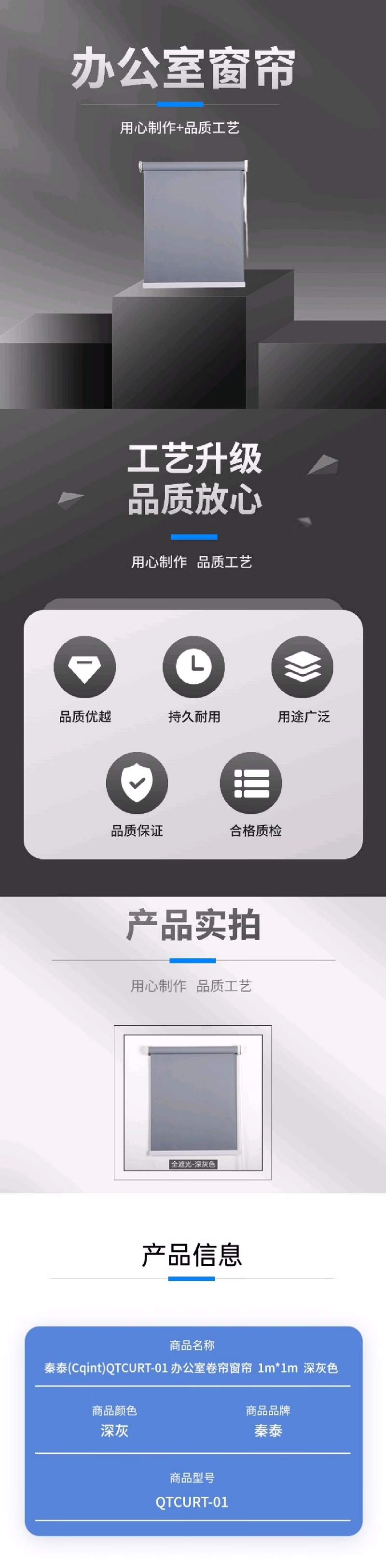 秦泰(Cqint) QTCURT-01 免打孔安装带杆遮光 1m*1m 办公室卷帘窗帘 1.00 米/个 (计价单位:个) 深灰色