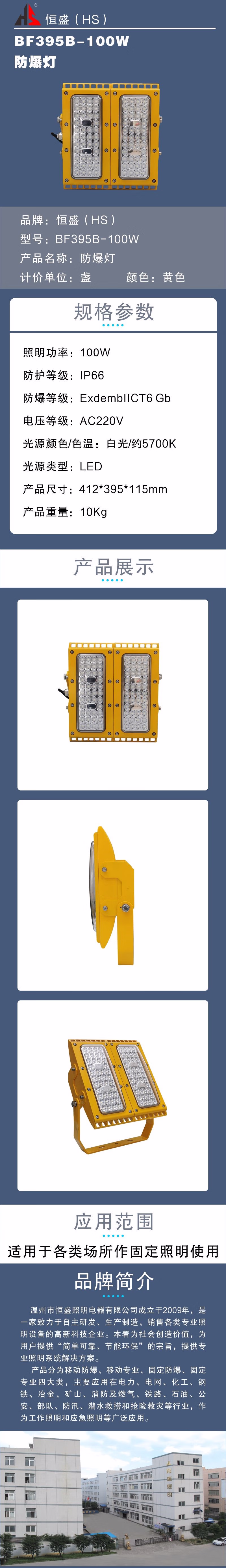 恒盛(HS) BF395B-100W 100W、IP66、ExdembIICT6 Gb、电压等级:AC220V、白光/约5700K、LED 防爆灯 (计价单位:盏) 黄色