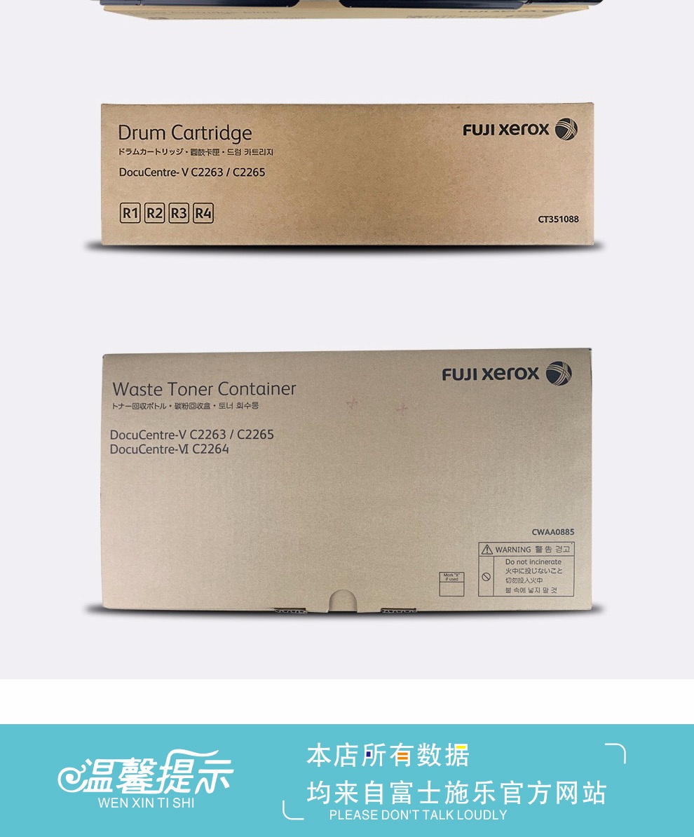 富士施乐 CT202496-CT202499 施乐原装墨粉盒碳粉 (适用于VC2263/2265/C2060/C2560/C3060) 四色一套CKMY