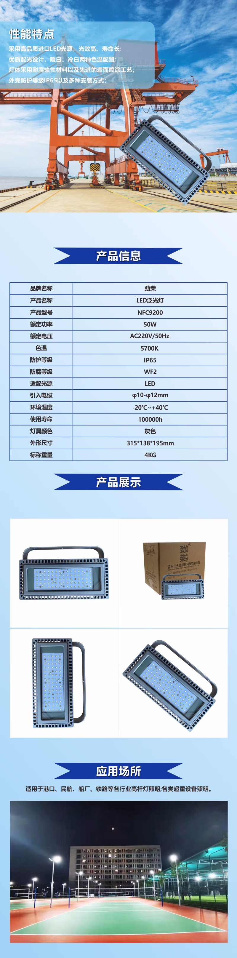 劲荣 NFC9200 50W IP65 AC220V/50HZ 5700K LED泛光灯 (计价单位:个) 灰色
