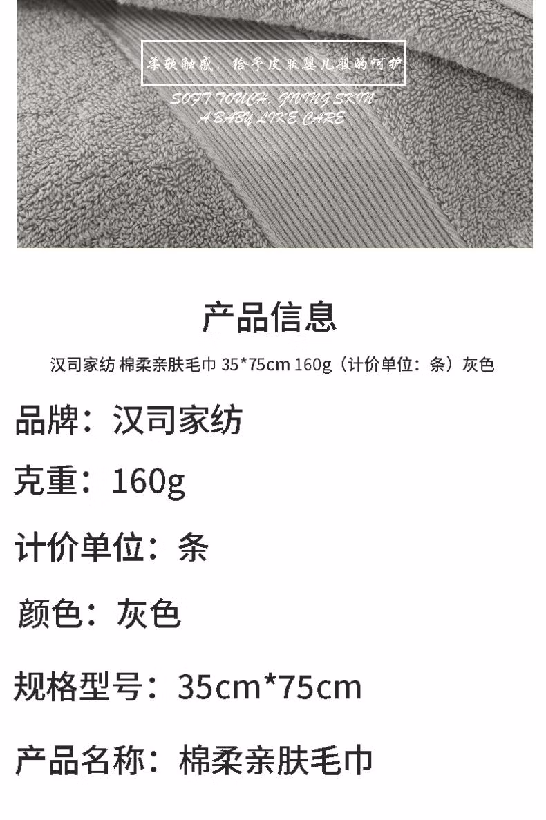 汉司家纺 棉柔亲肤 35*75cm 160g 灰 毛巾 (计价单位:条) 灰色