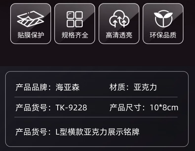 海亚森 TK-9228 10*8cm横款L型 展示铭牌 (计价单位:个) 透明色