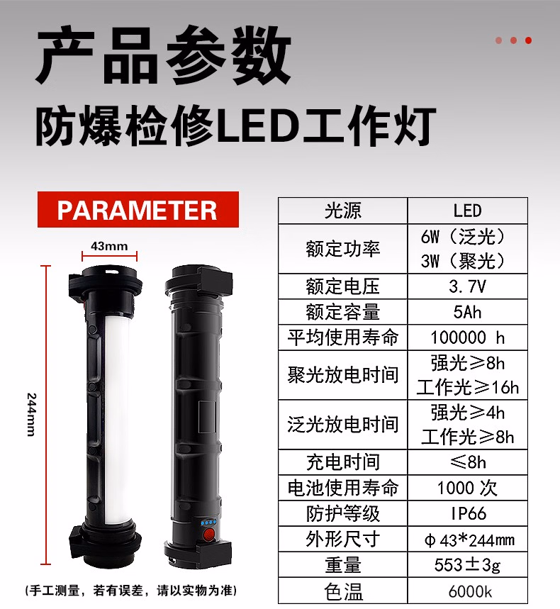 光源速 SW2182 3.7V 6W IP66 6000K 便携式工作棒灯 1.00 盏/台 (计价单位:台) 黑色