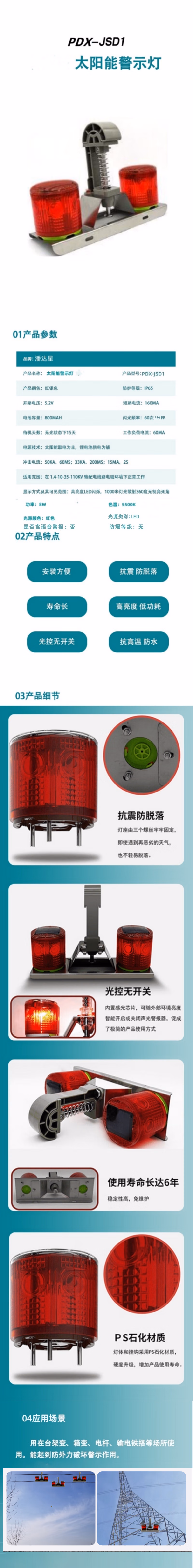 潘达星 PDX-JSD1 8W 5.2V 红光 5500K LED 太阳能警示灯 1.00 盏/台 (计价单位:台) 红银色